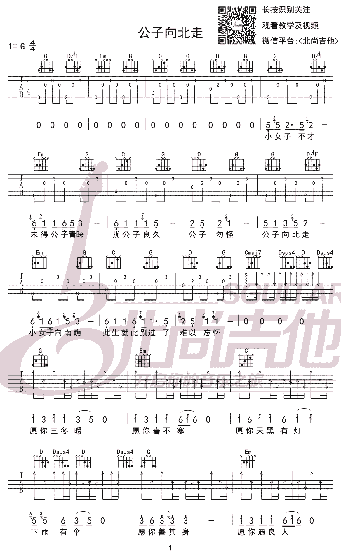 公子向北走吉他谱-李春花...
