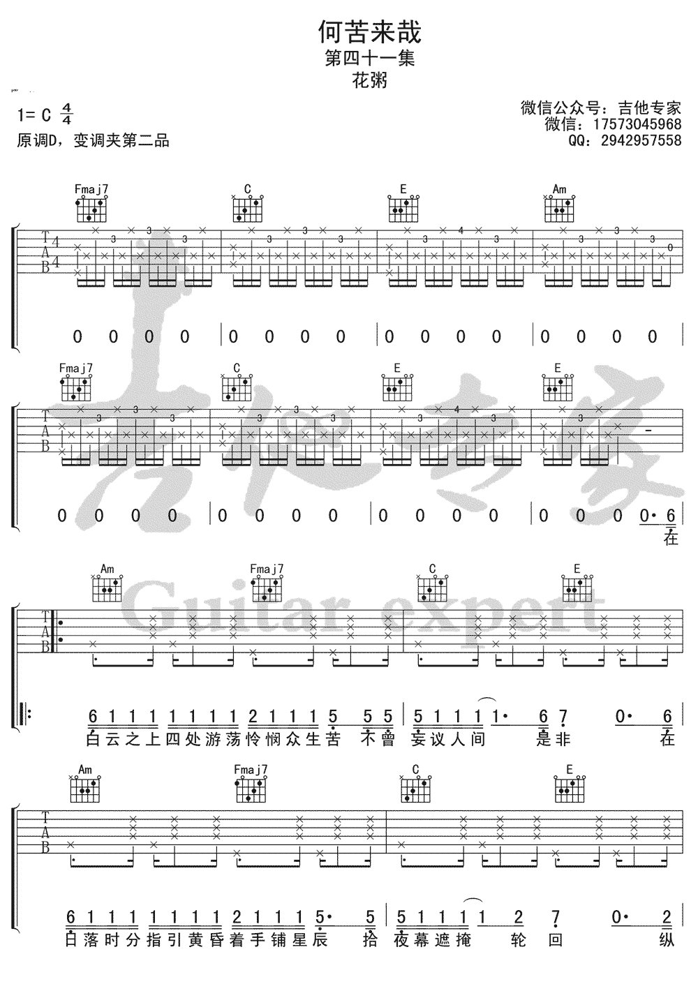何苦来哉吉他谱-花粥...
