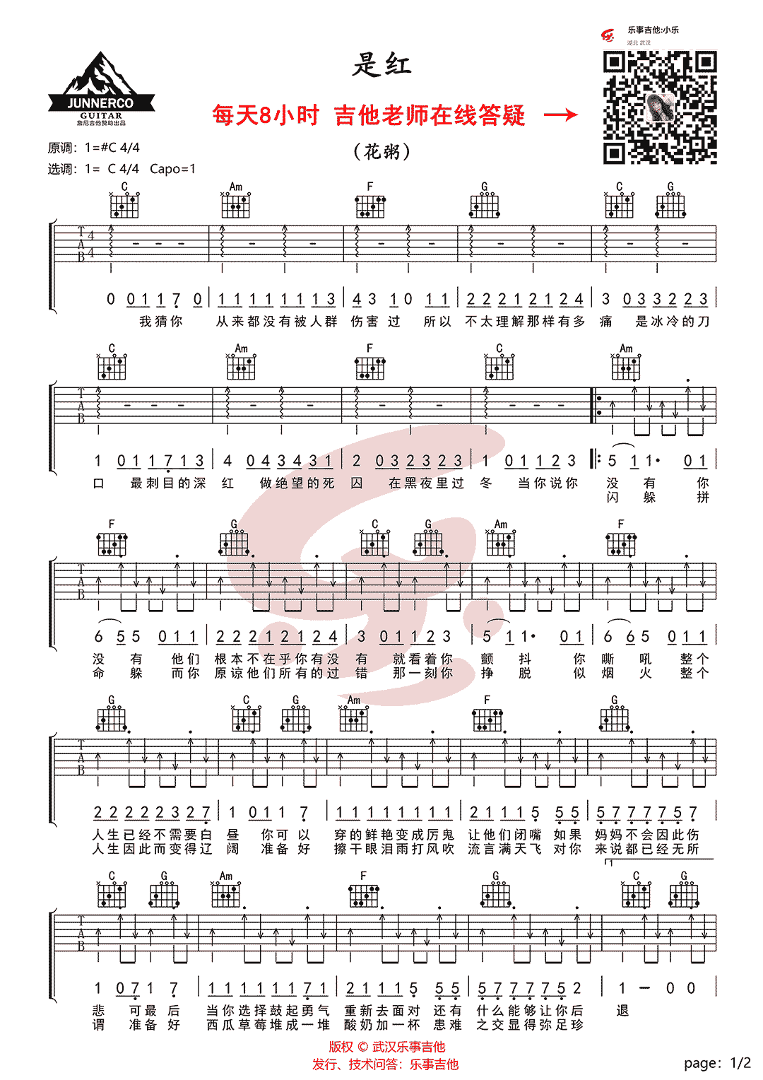 是红吉他谱-花粥...