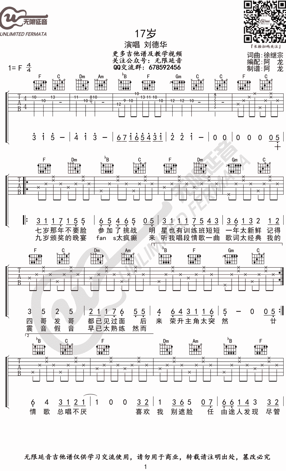 17岁吉他谱-刘德华...