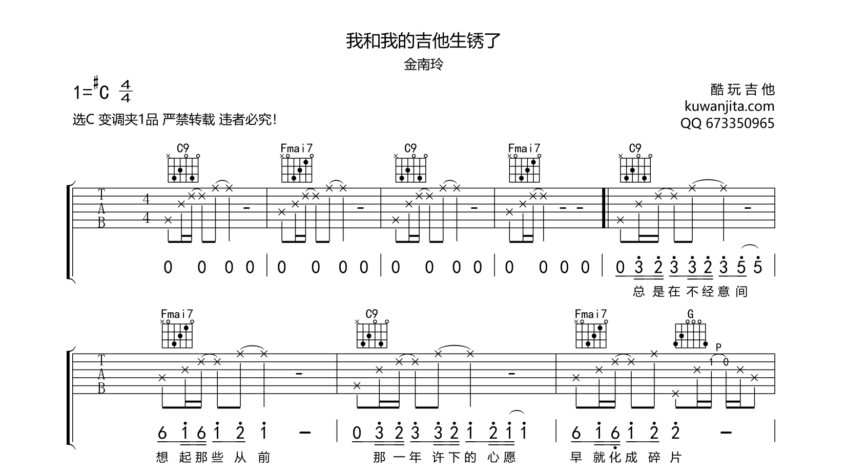 吉他我和我的吉他生锈了 吉他谱 金南玲