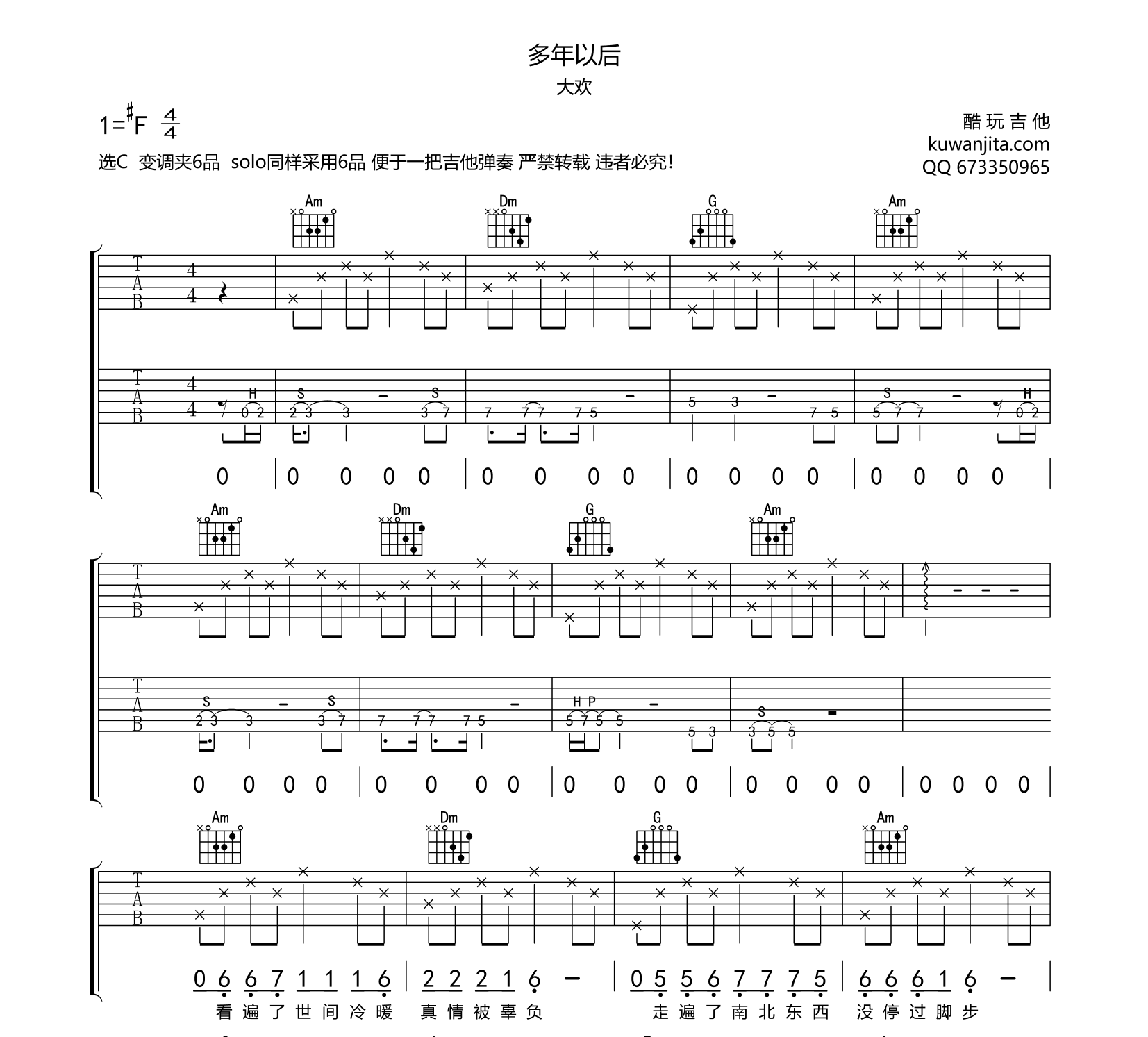 吉他多年以后 吉他谱 大欢