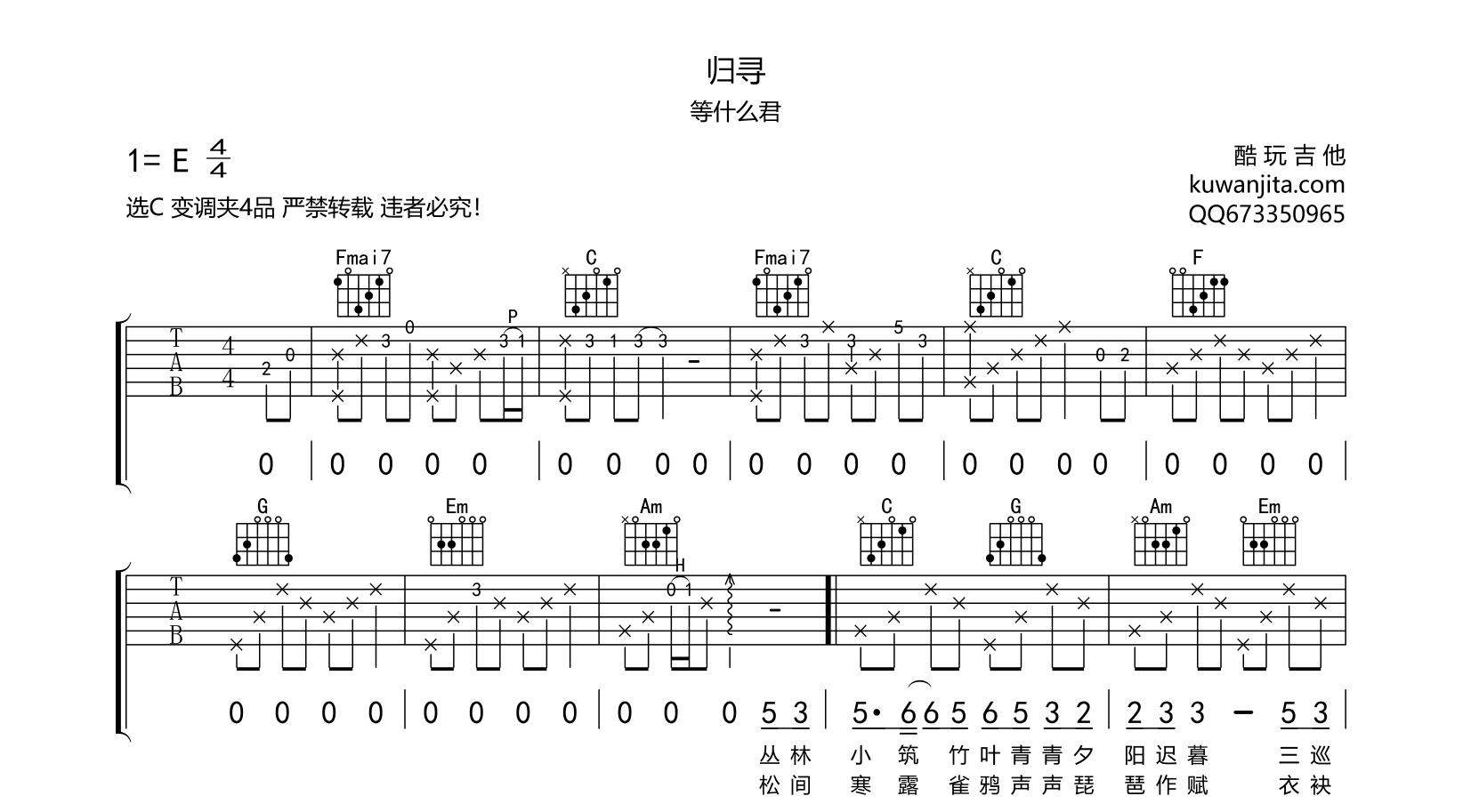 吉他归寻 吉他谱 等什么君