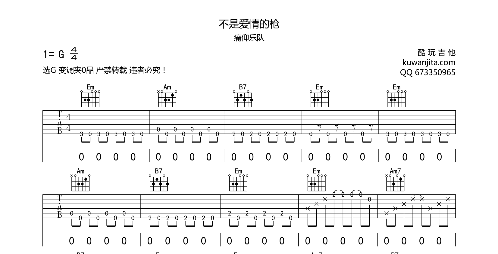 吉他不是爱情的枪 吉他谱 痛仰乐队