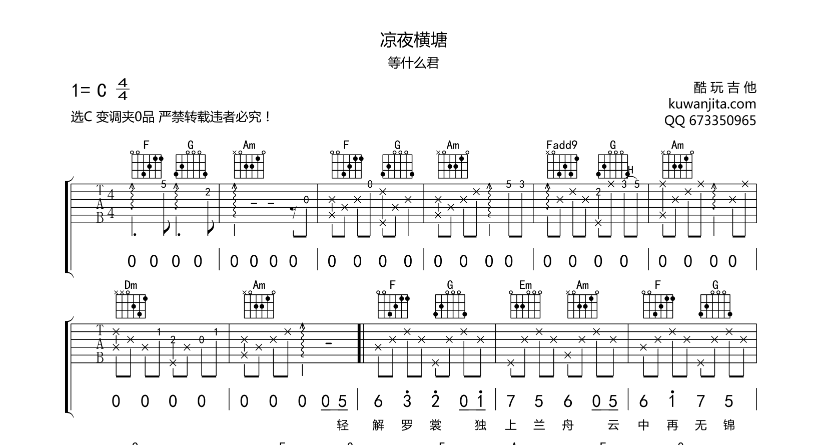 吉他凉夜横塘 吉他谱 等什么君