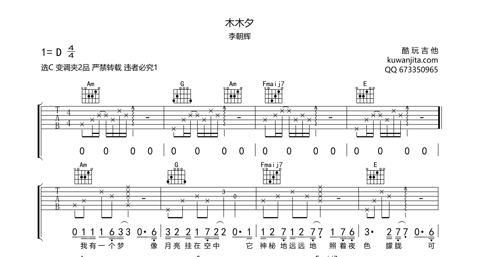 吉他木木夕 吉他谱 李朝辉