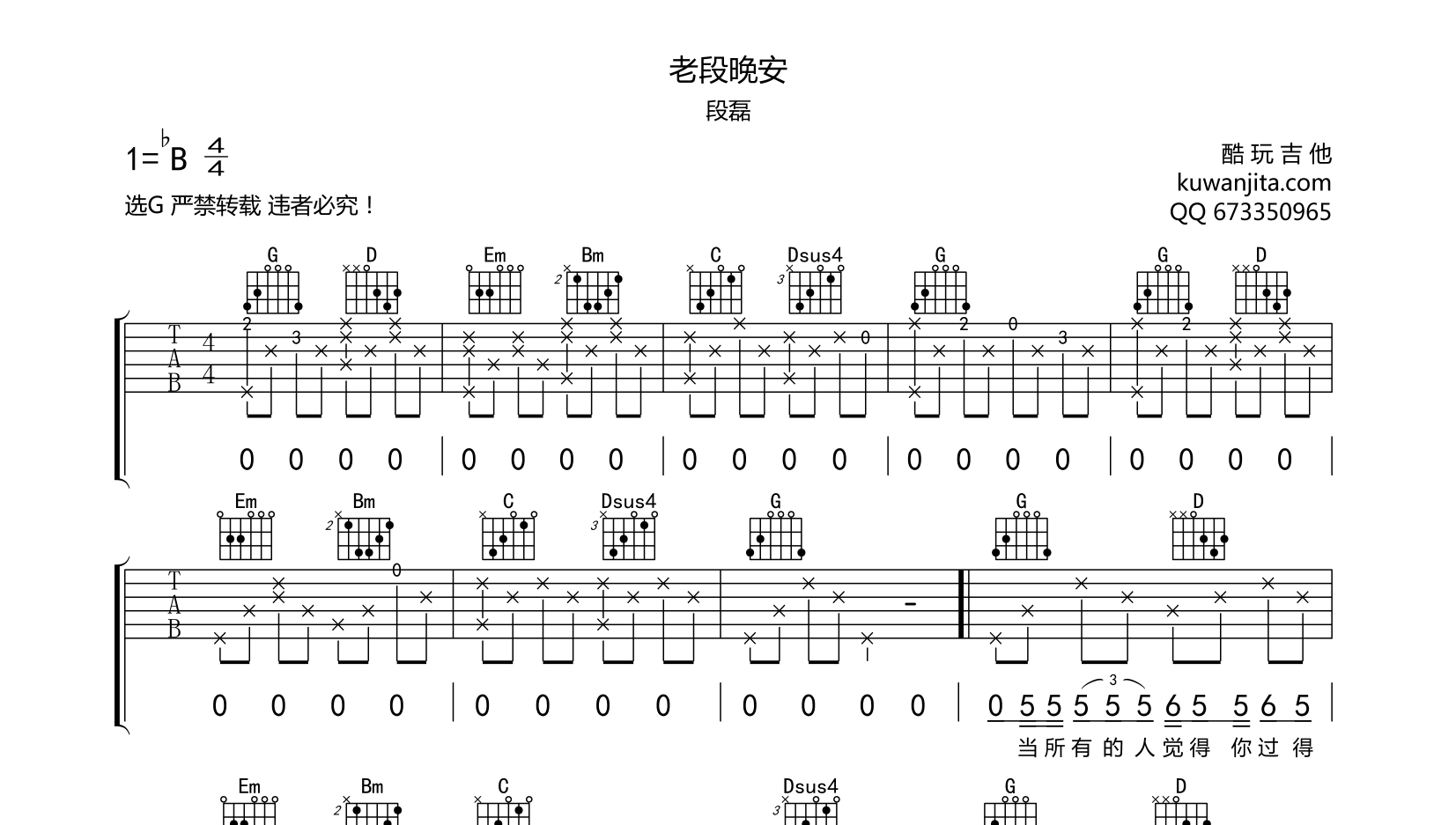 吉他老段晚安 吉他谱 段磊