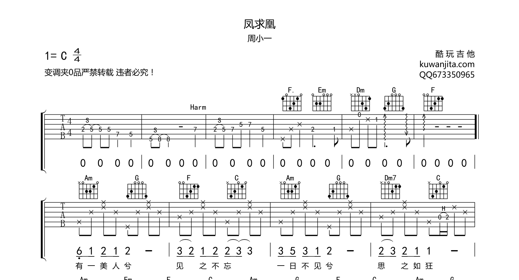 吉他凤求凰 吉他谱 周小一