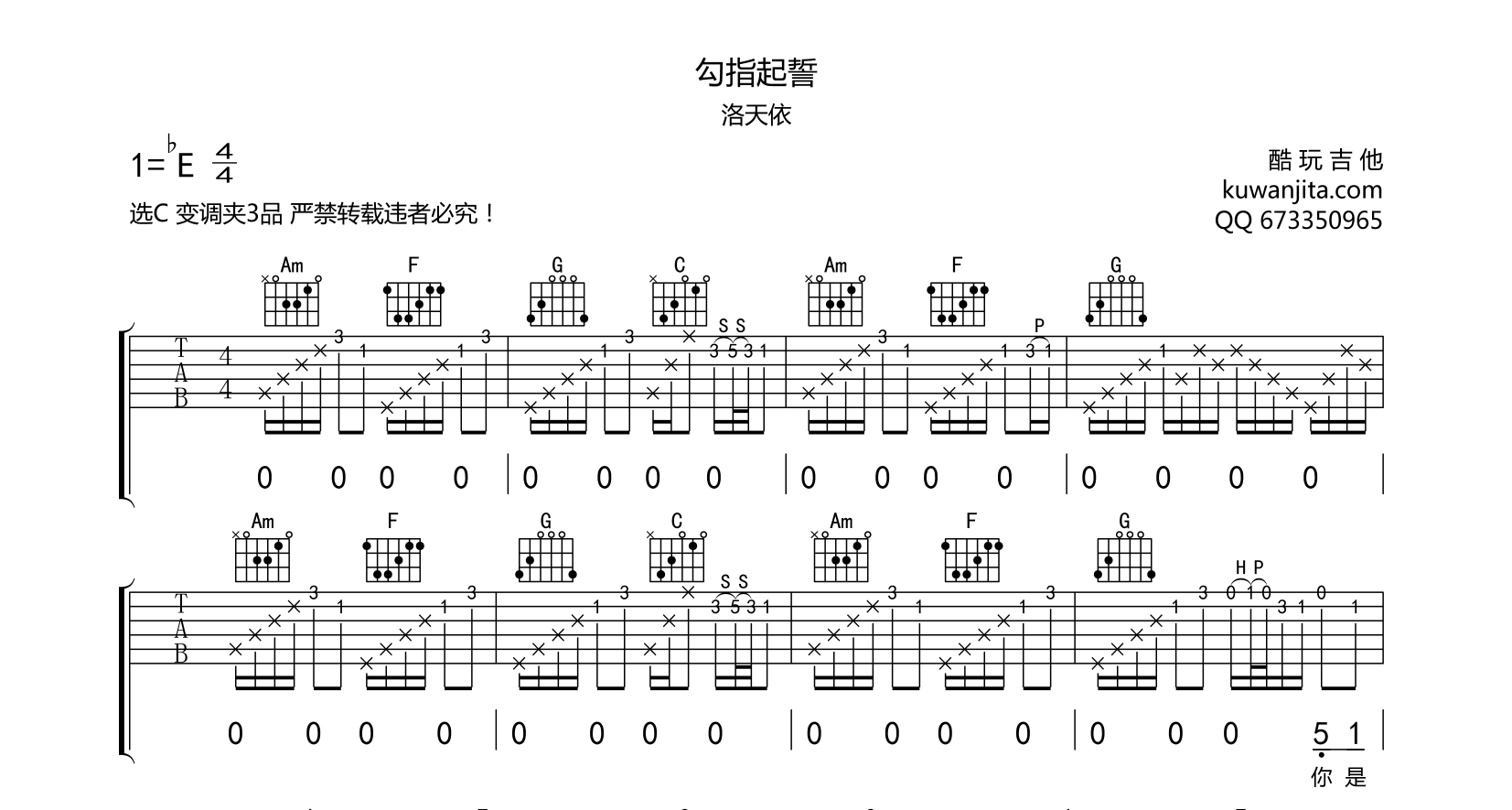吉他勾指起誓 吉他谱 洛天依