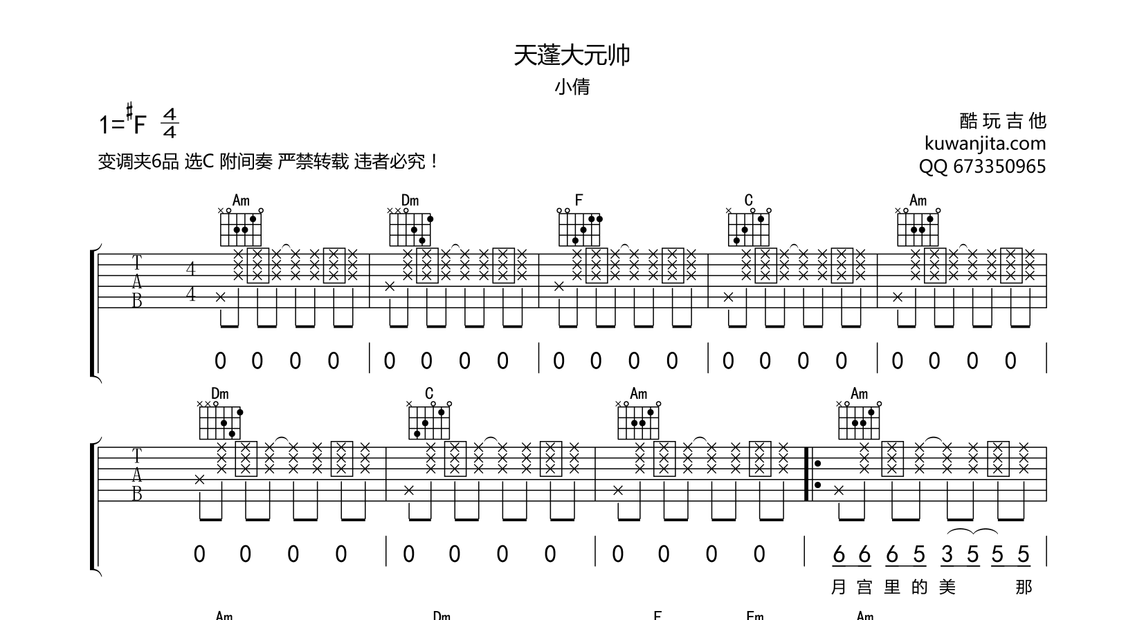 吉他天蓬大元帅 吉他谱 不二小倩