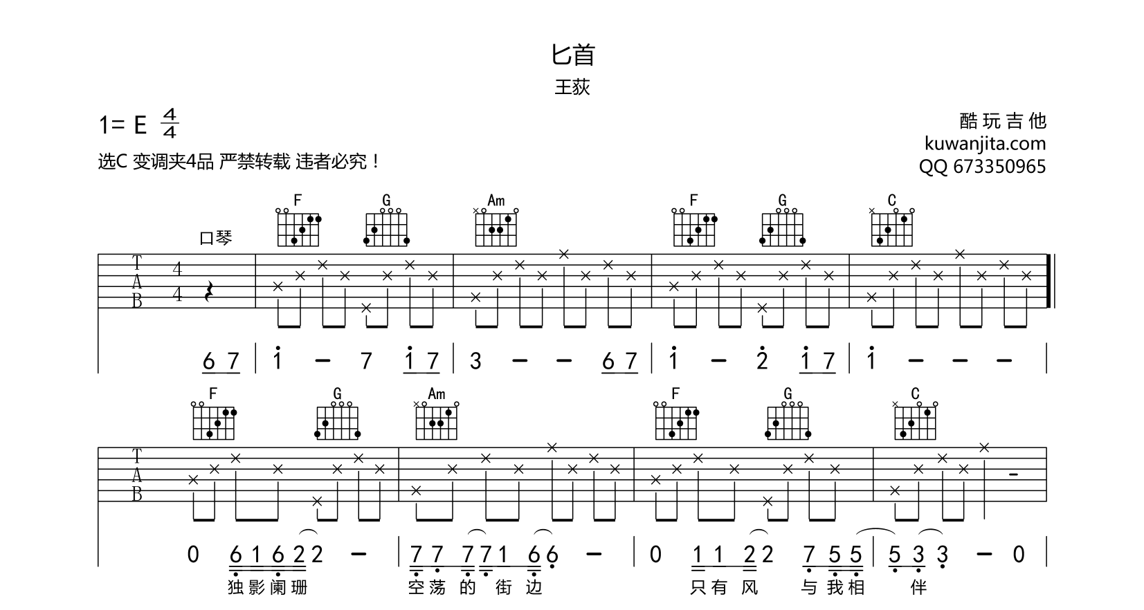 吉他匕首 吉他谱 王荻