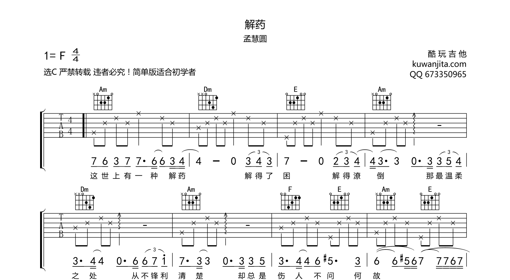 吉他解药 吉他谱 孟慧圆