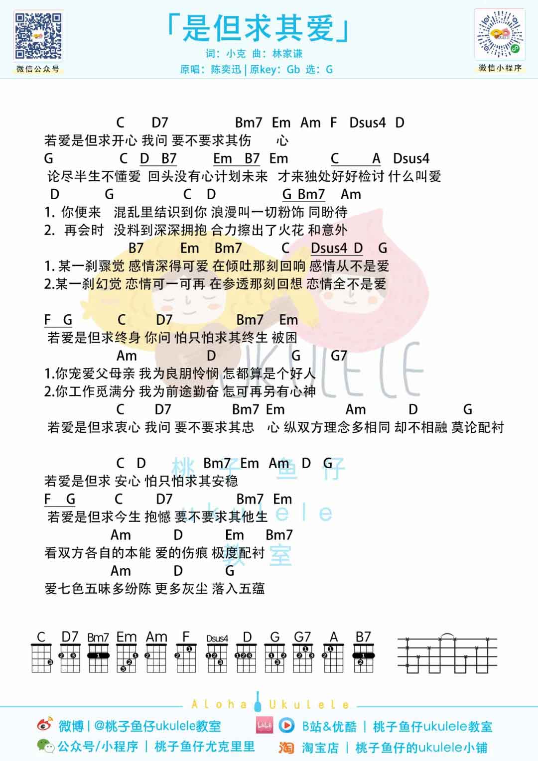 尤克里里陈奕迅《是但求其爱》ukulele尤克里里谱子