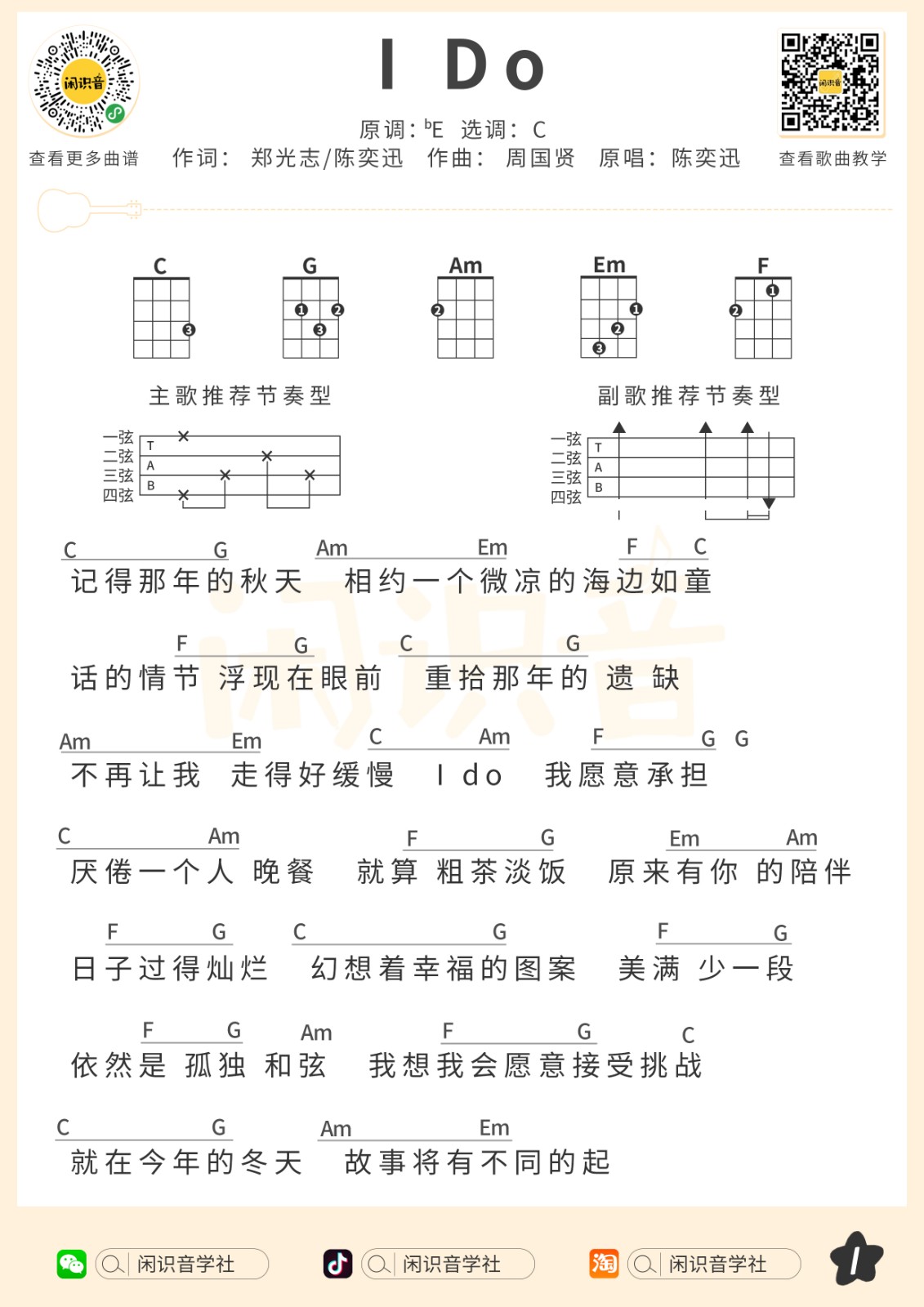 陈奕迅《IDo》尤克里里曲谱-C调和弦弹唱谱...