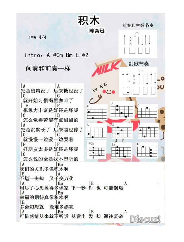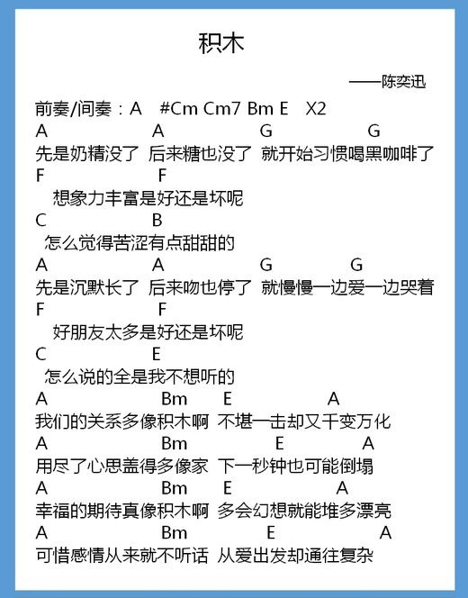 陈奕迅《积木》尤克里里谱-A调和弦弹唱谱...