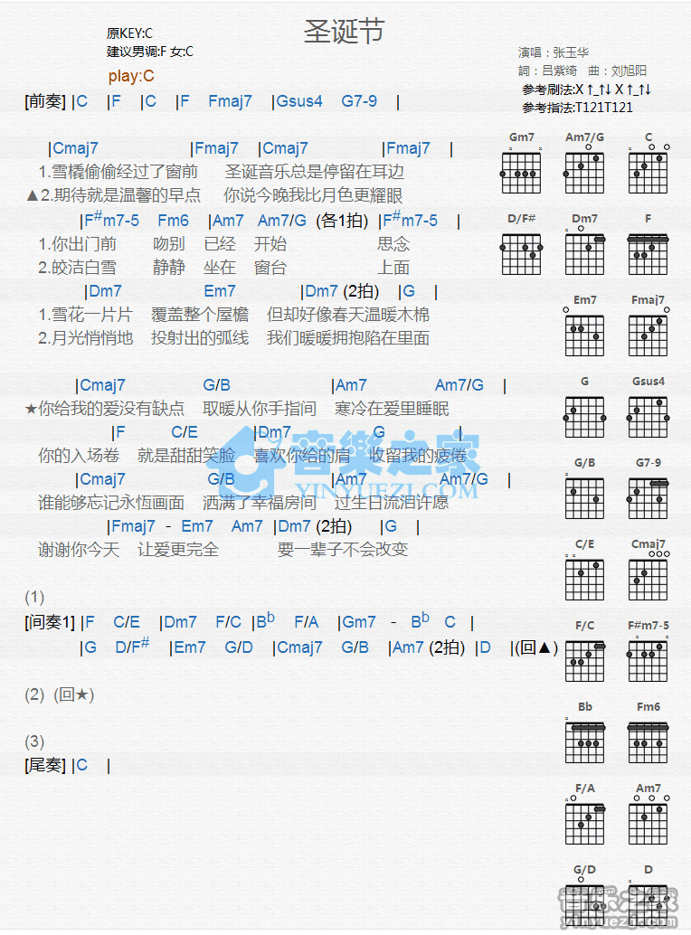 吉他张玉华《圣诞节》吉他谱_吉他弹唱谱_YYZJ编配