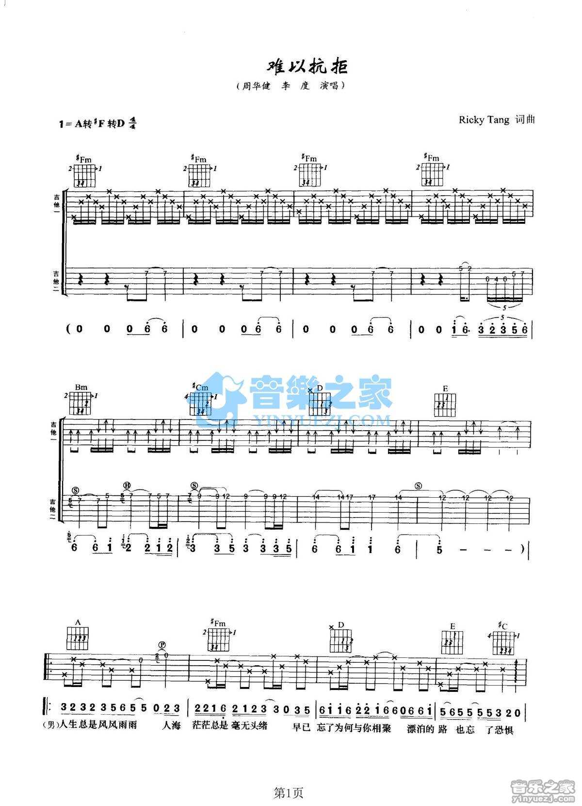 吉他周华健/李度《难以抗拒》吉他谱_吉他弹唱谱