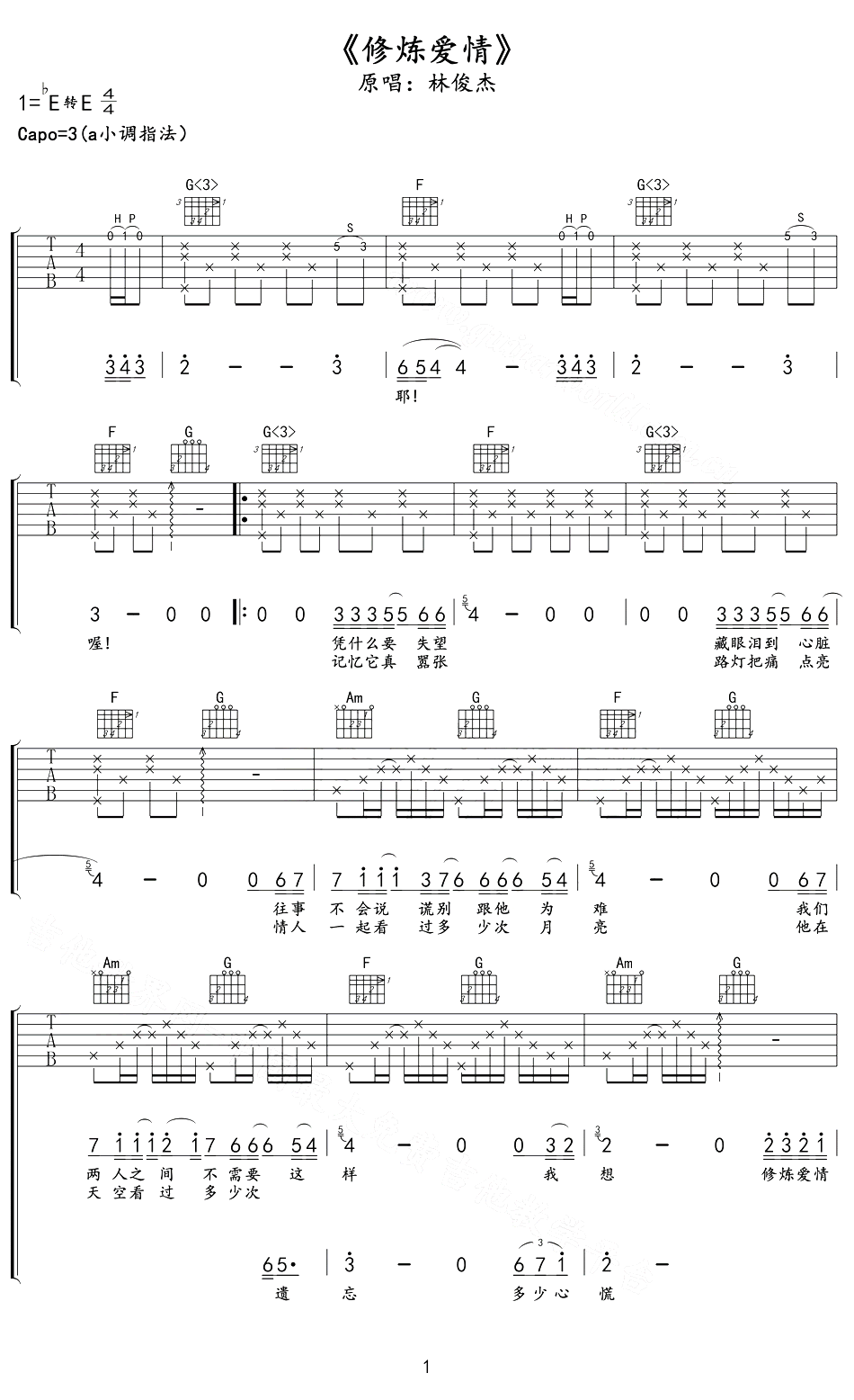 林俊杰演唱,修炼爱情吉他谱,原调降E转E,Capo三品,选用A小调指法,不同于林俊杰《修炼爱情》的苦楚和无奈,徐佳莹在我是歌手舞台唱出了另一种的领悟与释怀! ...