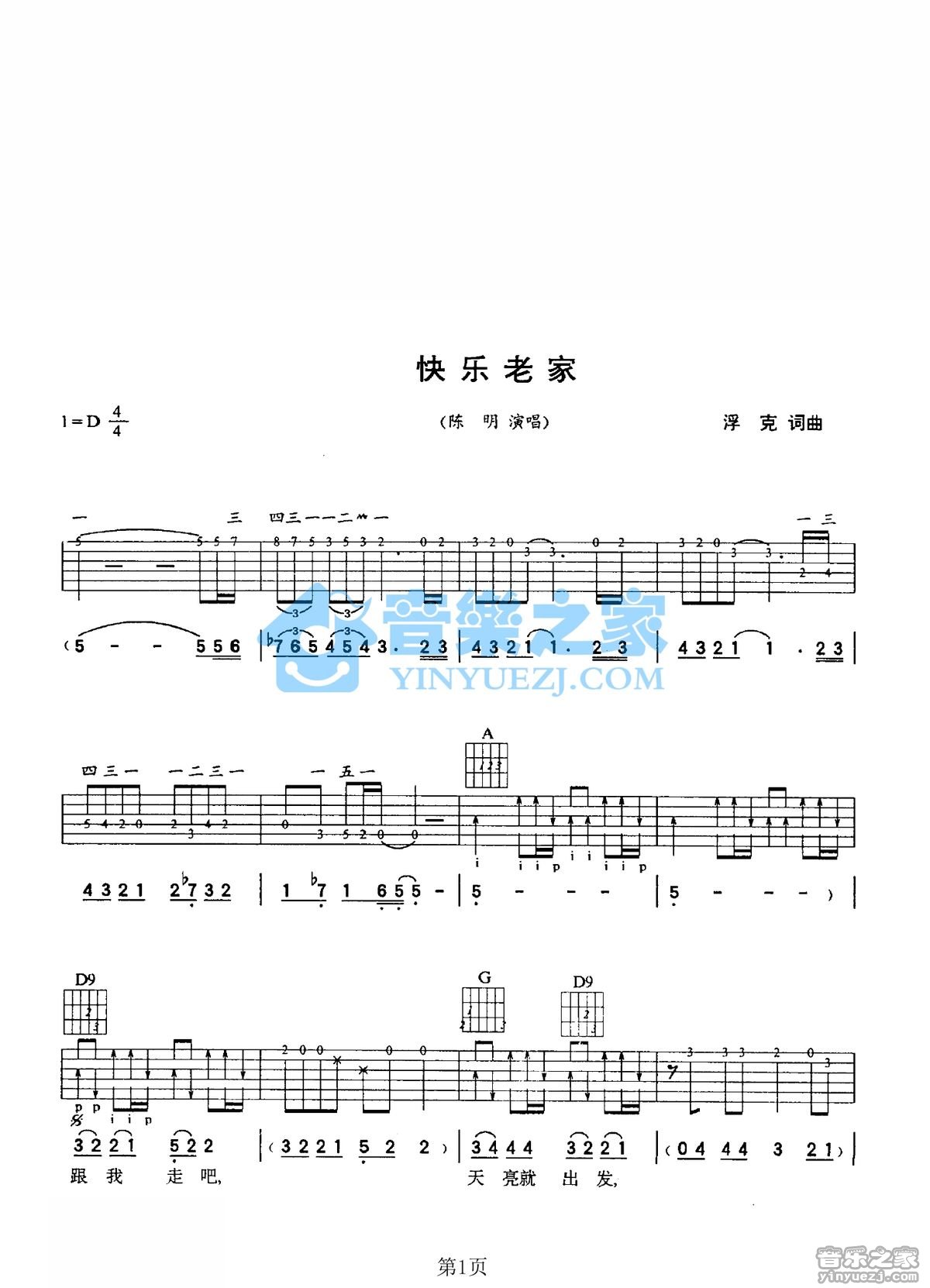 吉他陈明《快乐老家》吉他谱_吉他弹唱谱