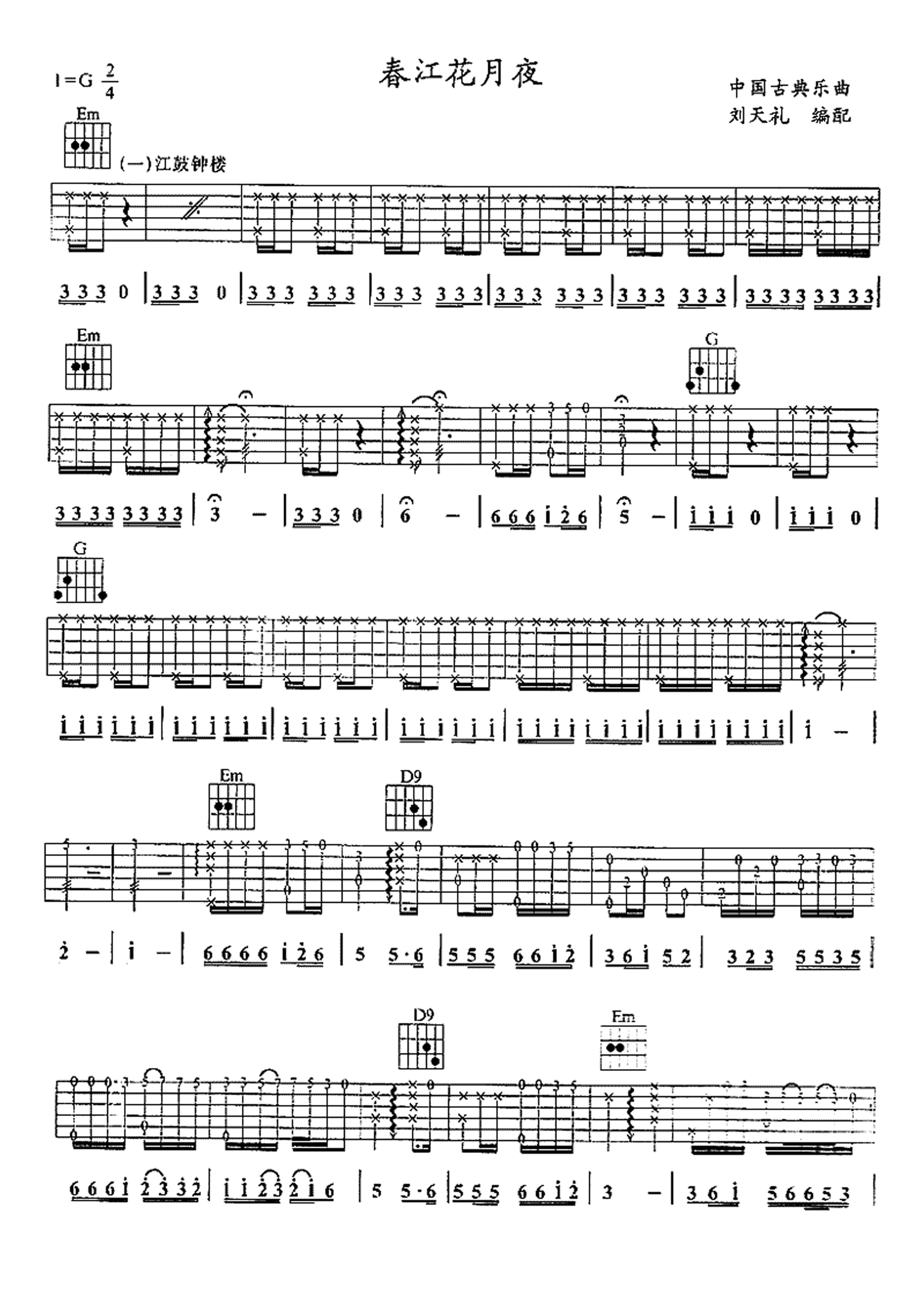 吉他《春江花月夜》吉他谱_吉他弹唱谱_刘天礼编配