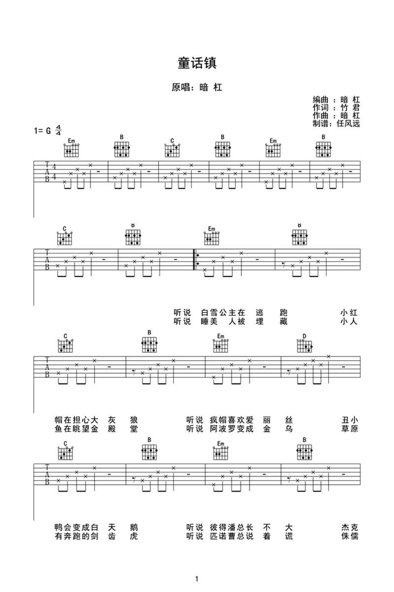 吉他陈一发儿《童话镇》吉他谱_吉他弹唱谱_任风远编配