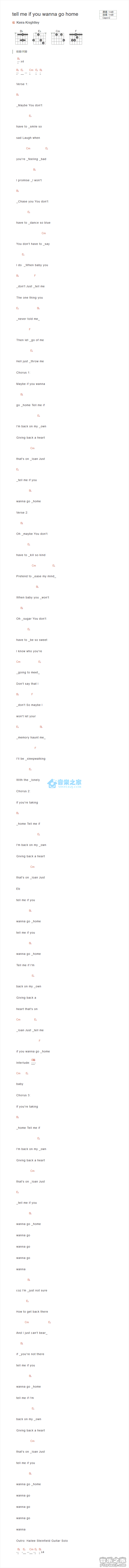 吉他KeiraKnightle《Tell Me If You Wanna Go Home》吉他谱_吉他弹唱谱_YYZJ编配
