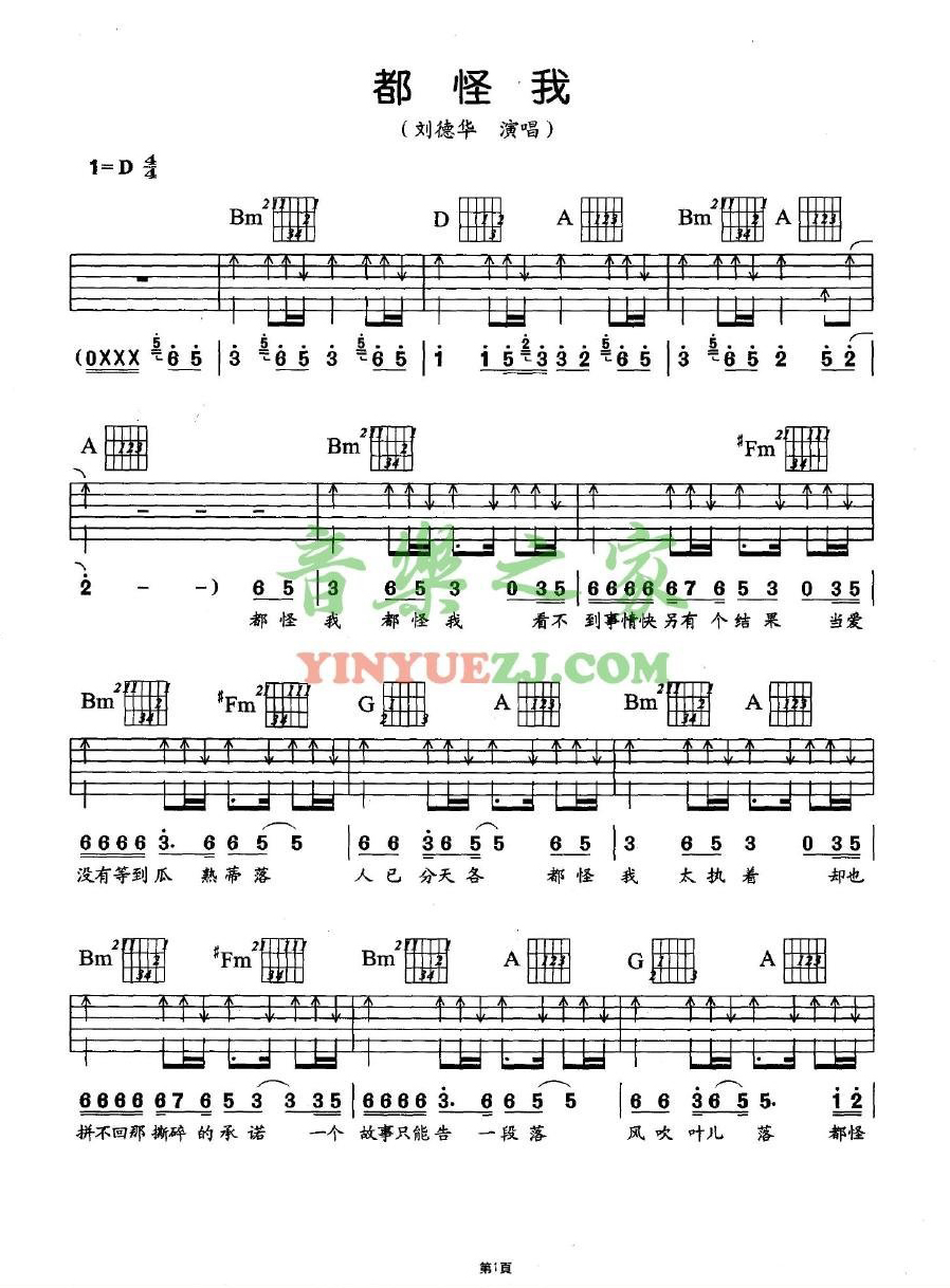 刘德华《都怪我》吉他谱_D调吉他弹唱谱...