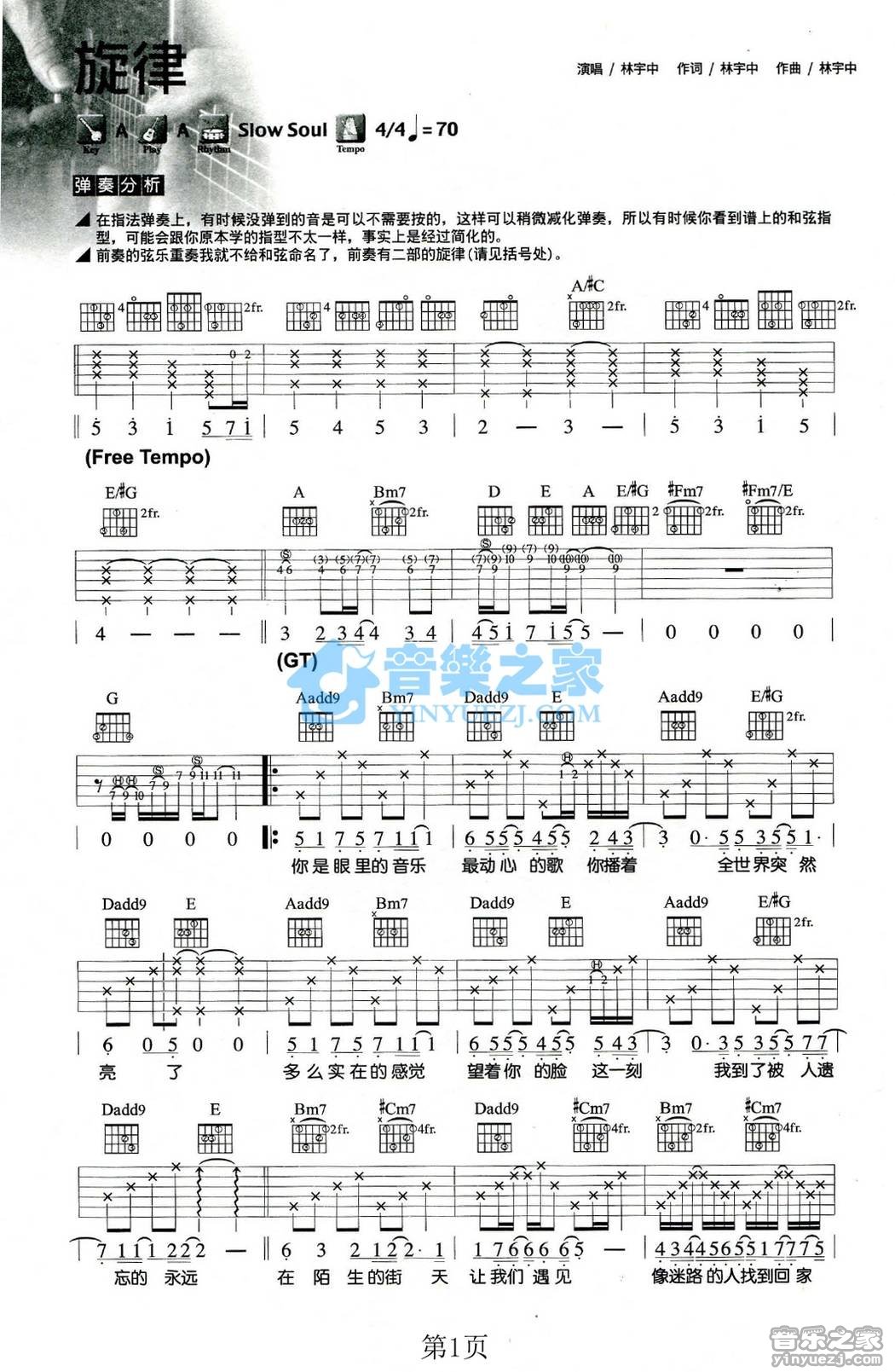 吉他林宇中《旋律》吉他谱_吉他弹唱谱_网络转载编配
