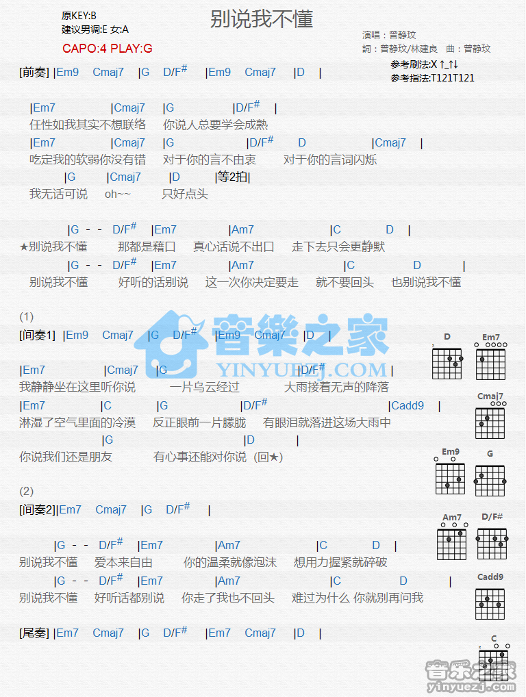 吉他曾静玟《别说我不懂》吉他谱_吉他弹唱谱_YYZJ编配