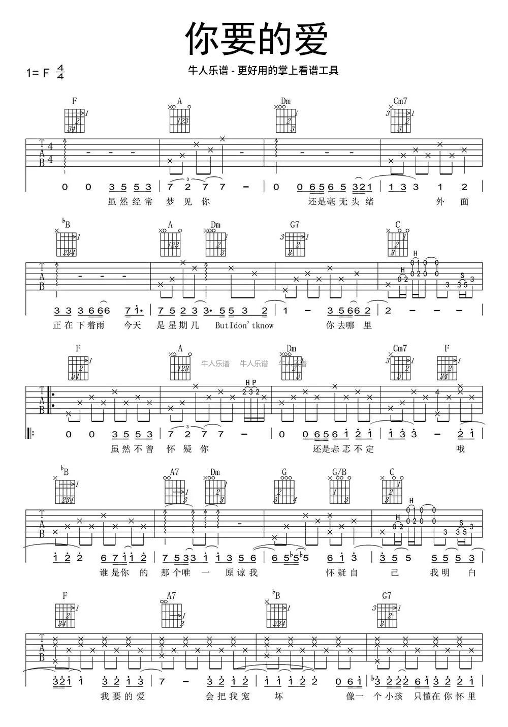 吉他戴佩妮《你要的爱》吉他谱_吉他弹唱谱_牛人乐谱编配