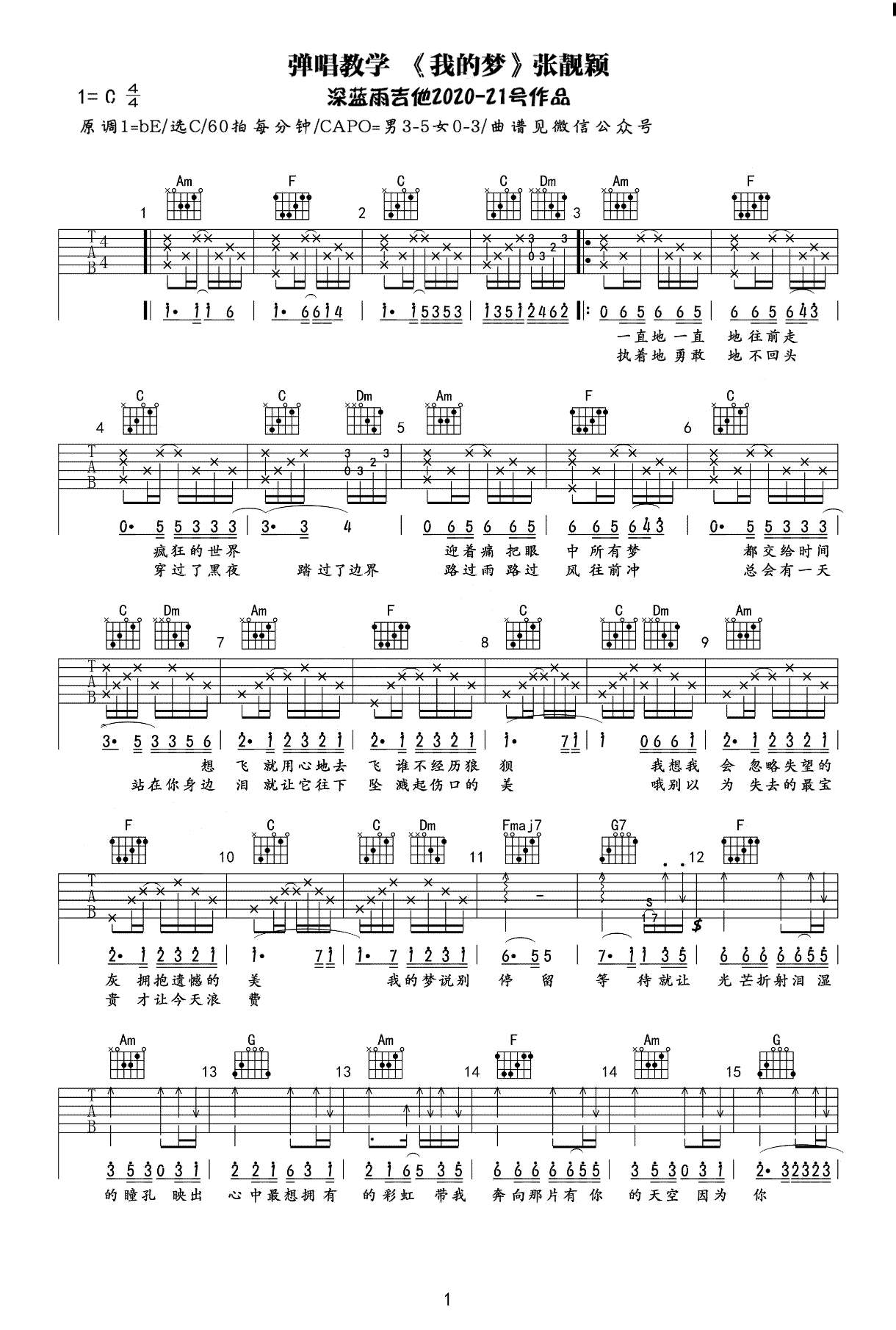 吉他张靓颖《我的梦》吉他谱_吉他弹唱谱_深蓝雨吉他编配