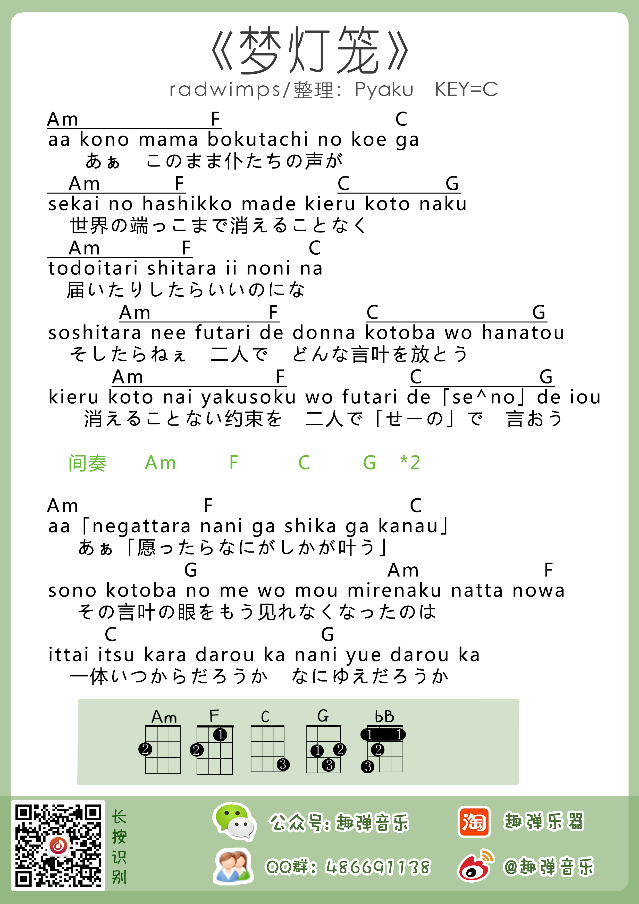 吉他RADWIMPS《梦灯笼》吉他谱_吉他弹唱谱_Pyaku编配