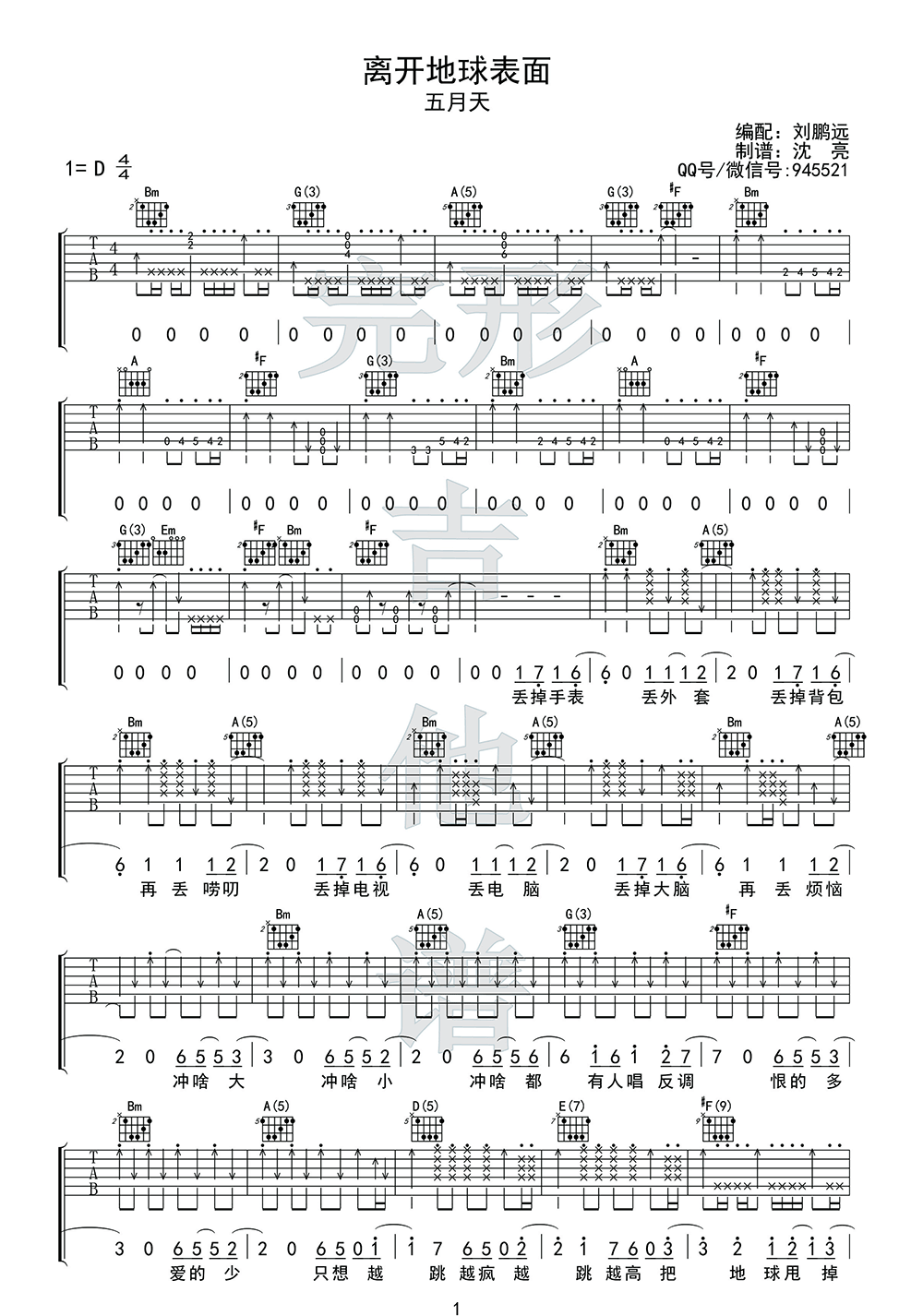 离开地球表面吉他谱,五月天演唱,离开地球表面六线谱,原唱五月天本曲谱改编自刘鹏远弹唱版本,D调指法,随谱附上吉他弹唱演示视频,琴友们参考练习。动感的曲调,挥舞青春的热血,当熟悉的旋律响起,烦恼就离开地球表面了。...