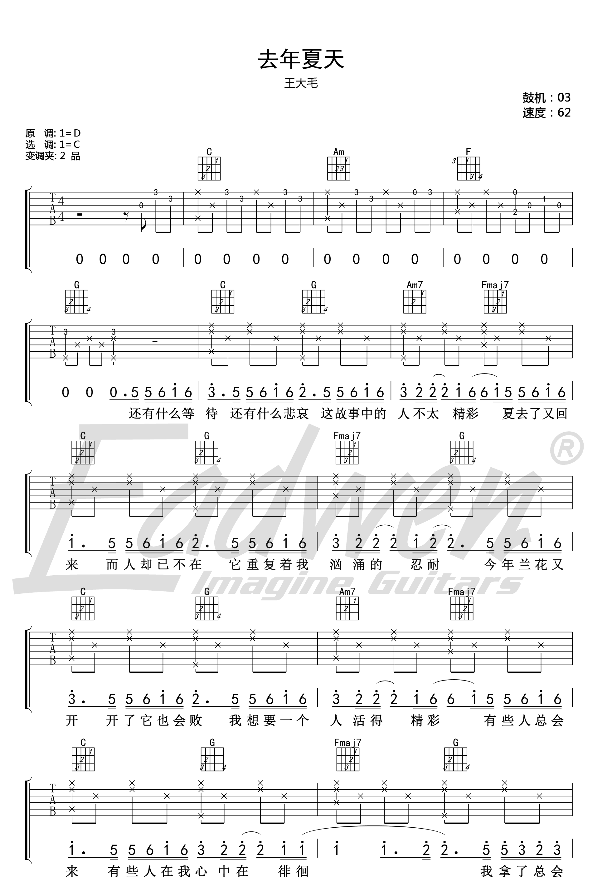 吉他王大毛《去年夏天》吉他谱_吉他弹唱谱_爱德文吉他编配