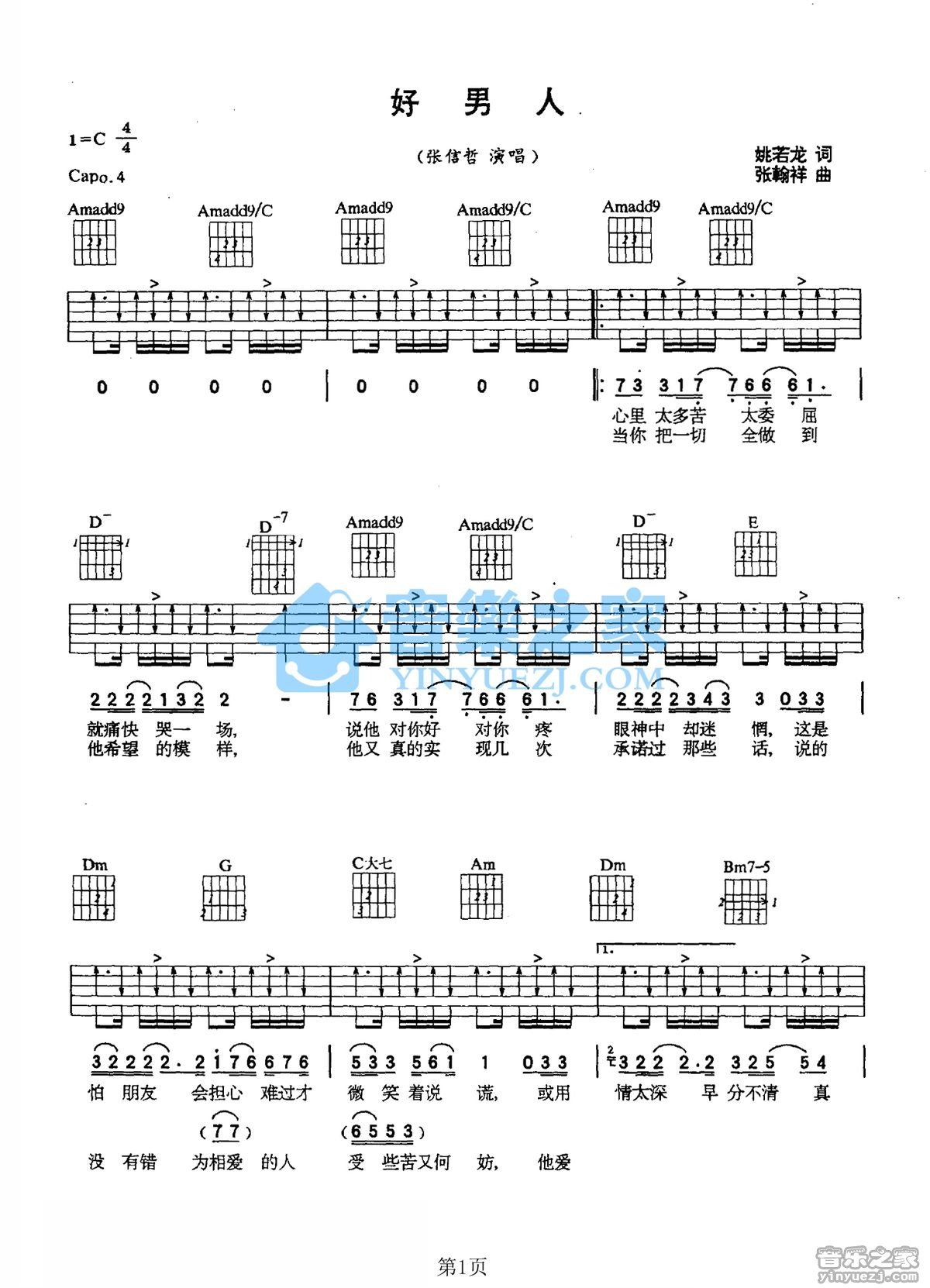 吉他张镐哲《好男人》吉他谱_吉他弹唱谱
