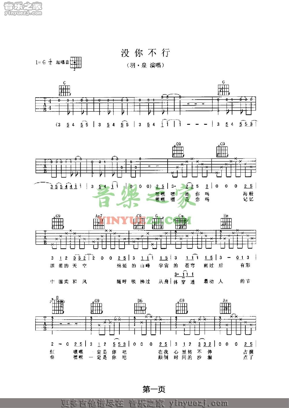 羽泉《没你不行》吉他谱,YYZJ编配出品,共有3张高清图谱。...