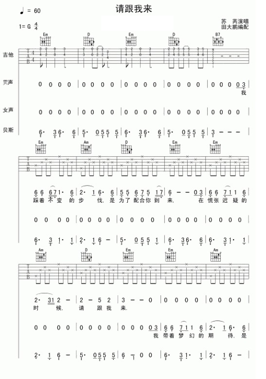 苏芮《请跟我来》吉他谱_G调吉他弹唱谱...