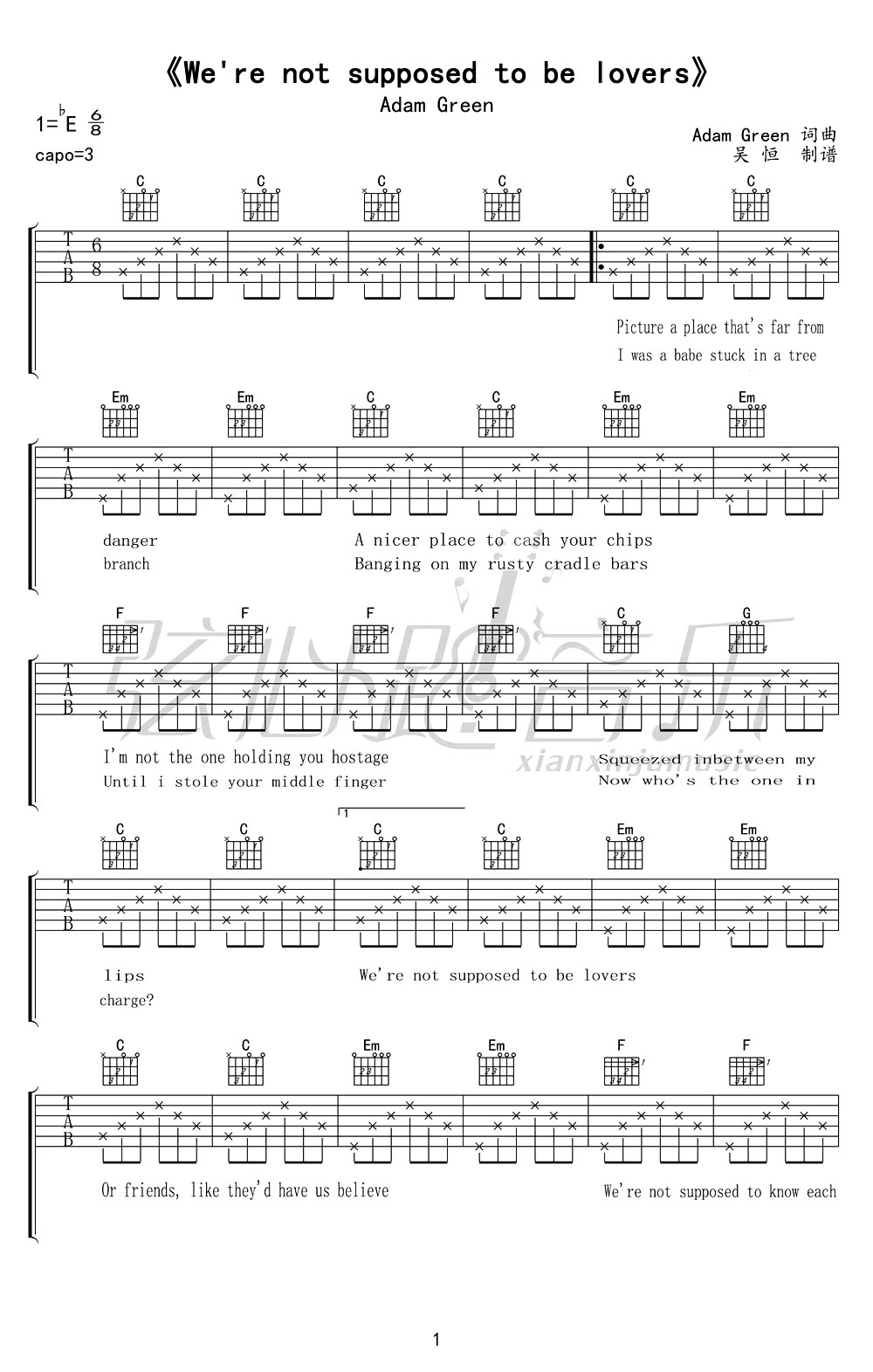 吉他AdamGreen《Adam Green_Were not supposed to be lover》吉他谱_吉他弹唱谱_弦心距音乐吴恒编编配