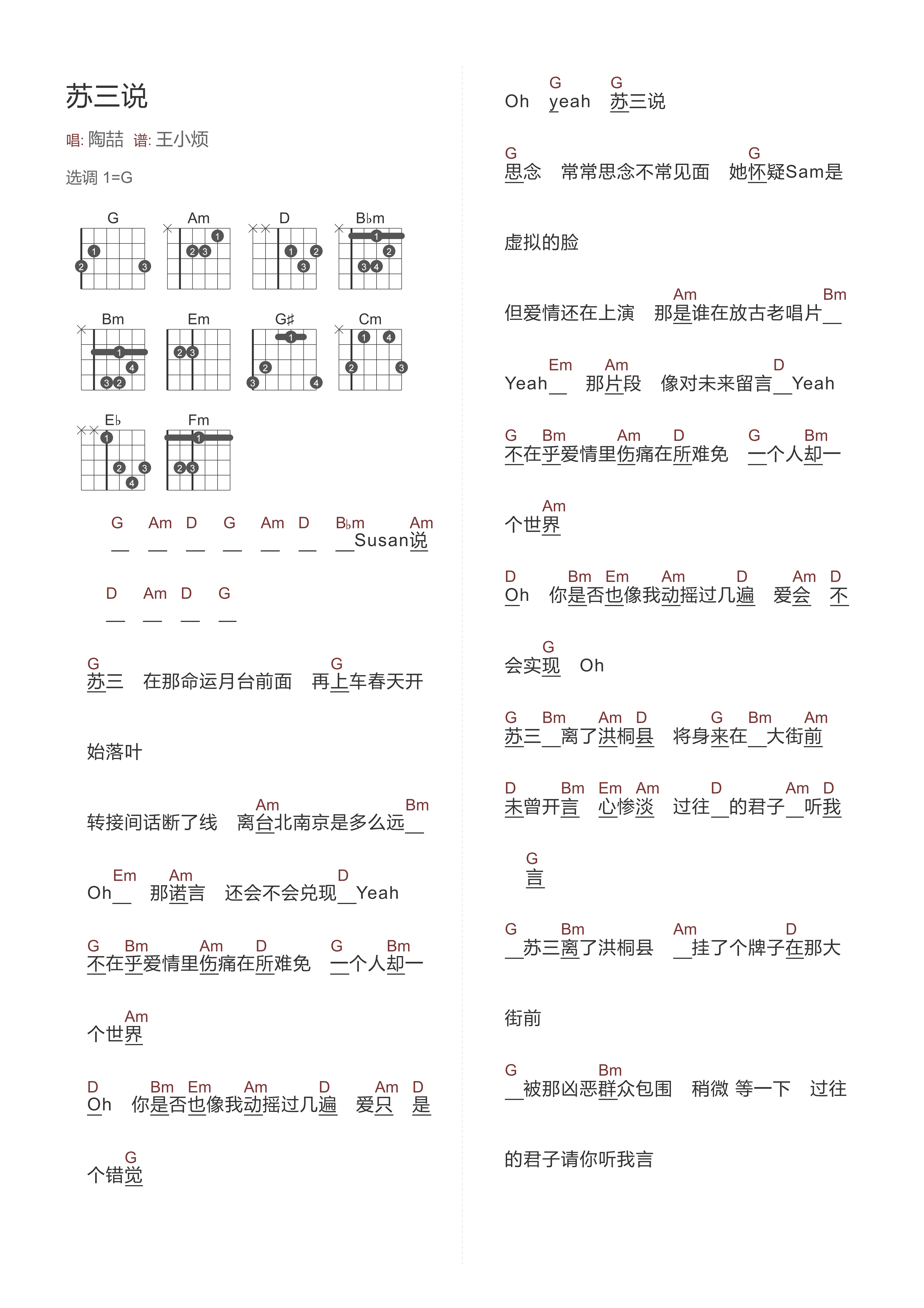 吉他陶喆《苏三说》吉他谱_吉他弹唱谱_YYZJ编配