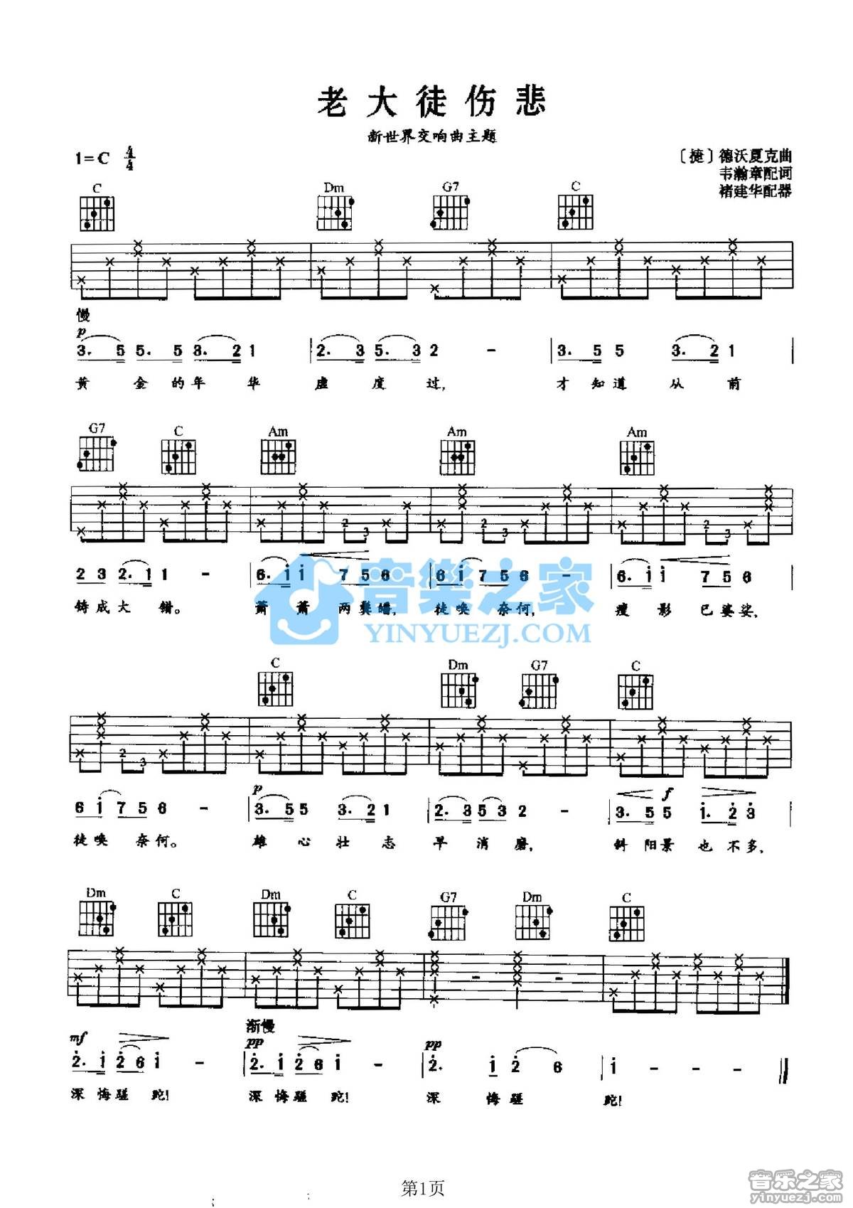 吉他新世界交响曲主题《老大徒伤悲》吉他谱_吉他弹唱谱