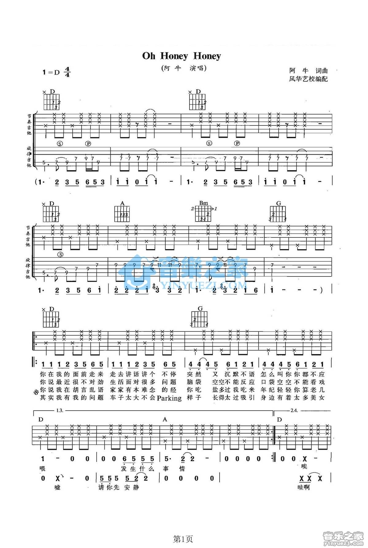 吉他 阿牛《Oh Honey Honey》吉他谱_吉他弹唱谱