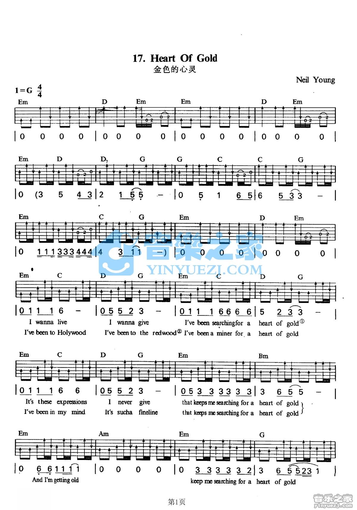 吉他Neil Young《Heart Of Gold》吉他谱_吉他弹唱谱