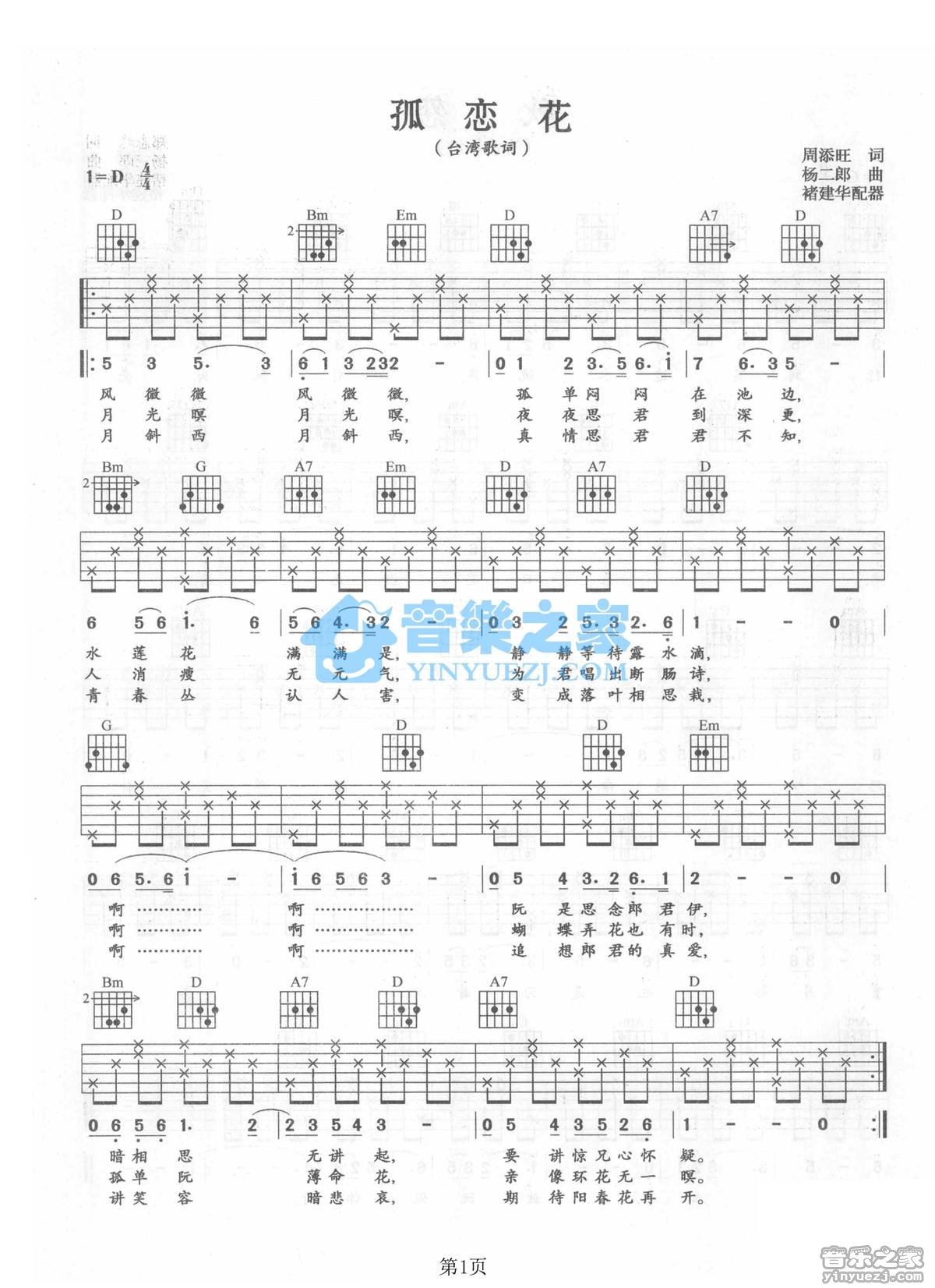 吉他纪露霞《孤恋花》吉他谱_吉他弹唱谱
