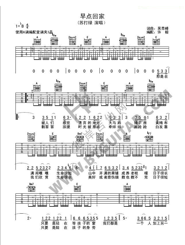 吉他苏打绿《早点回家》吉他谱_吉他弹唱谱