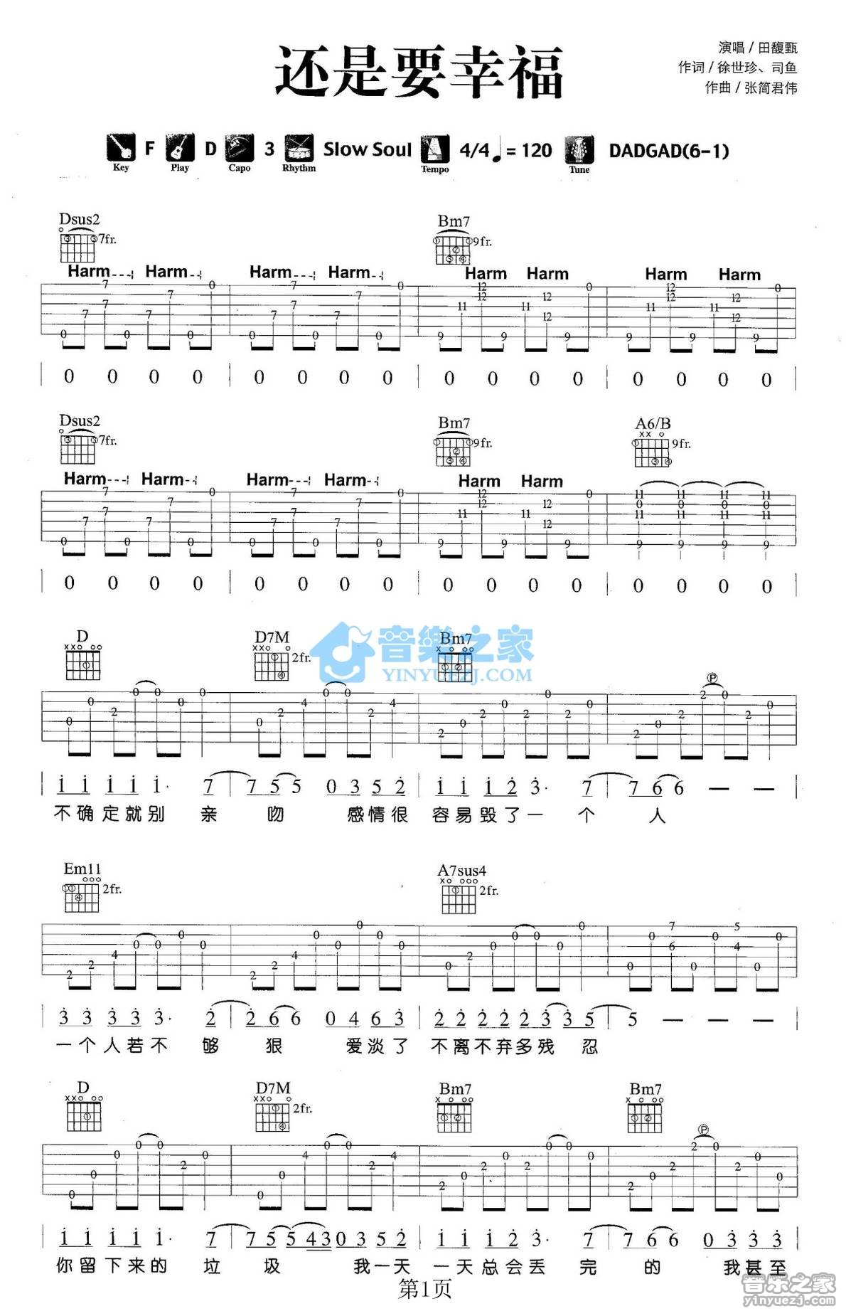 吉他田馥甄《还是要幸福》吉他谱_吉他弹唱谱_YYZJ编配