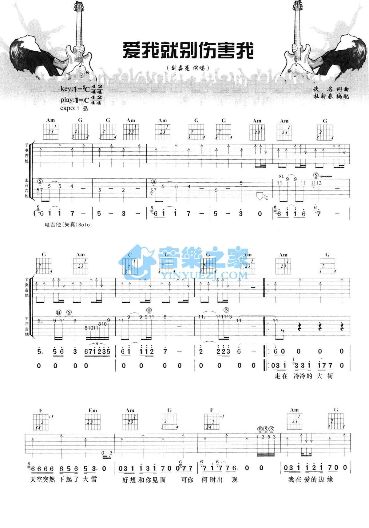 C调双吉他版刘嘉亮《爱我就别伤害我》吉他弹唱六线谱...