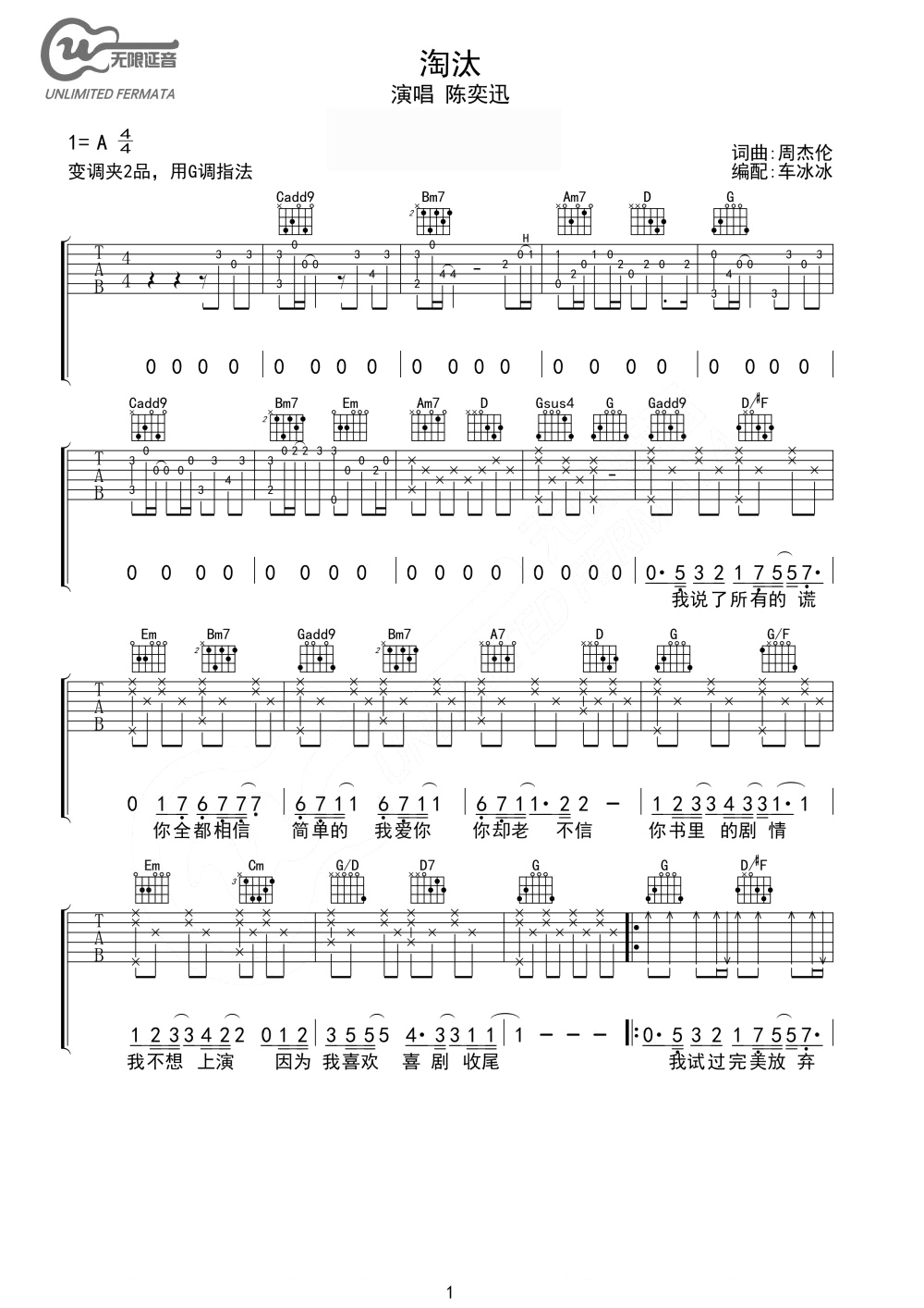 吉他陈奕迅《淘汰》吉他谱_吉他弹唱谱_无限延音编配