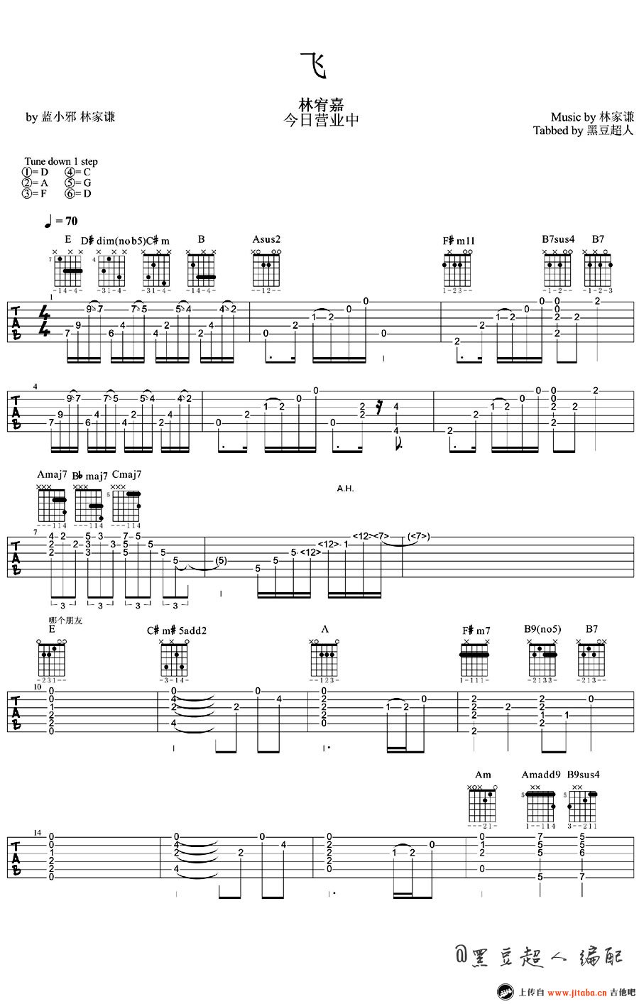 吉他林宥嘉《飞》吉他谱_吉他弹唱谱_黑豆超人编配