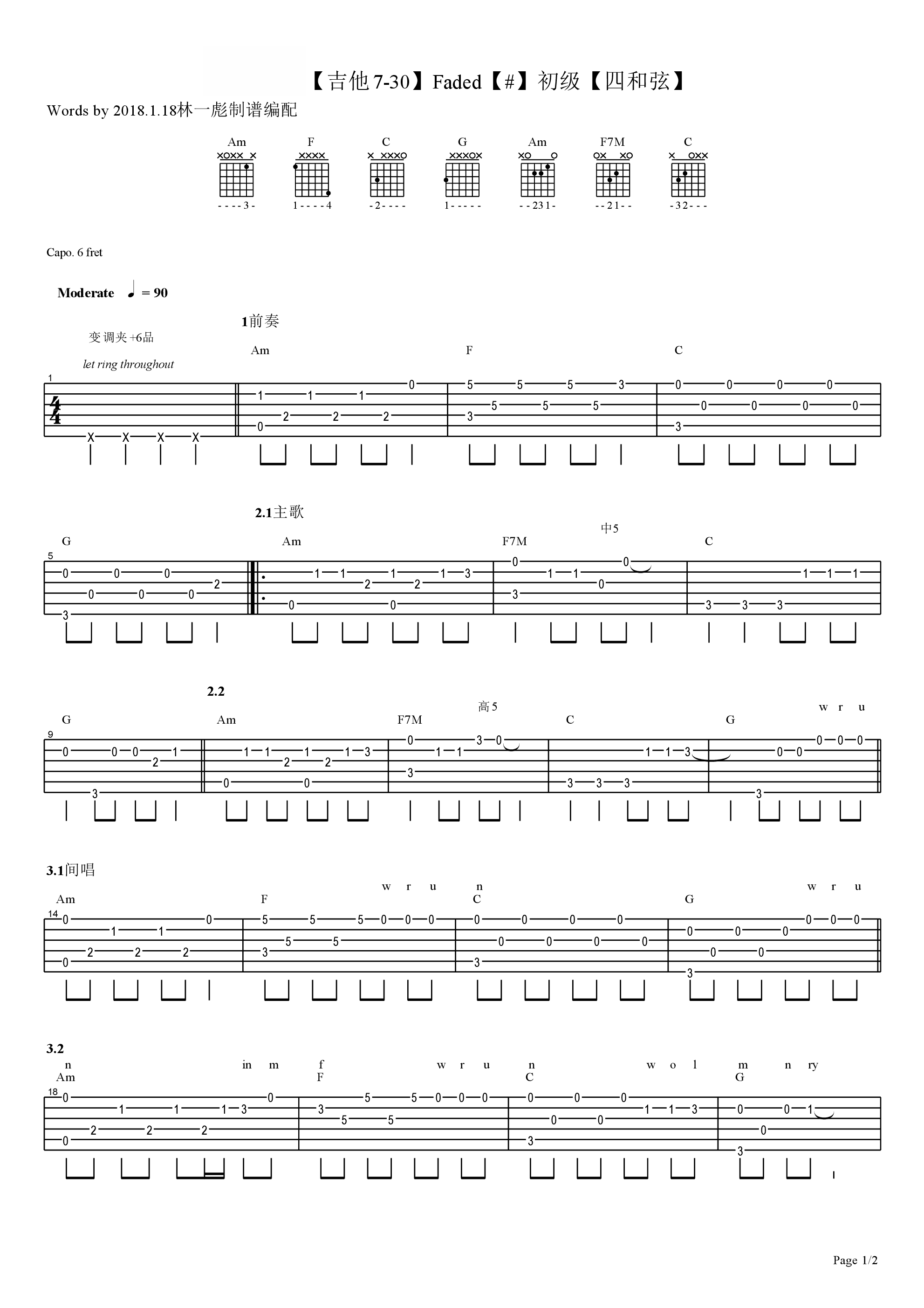吉他《Faded》吉他谱_吉他弹唱谱_OD琴行林一彪编配