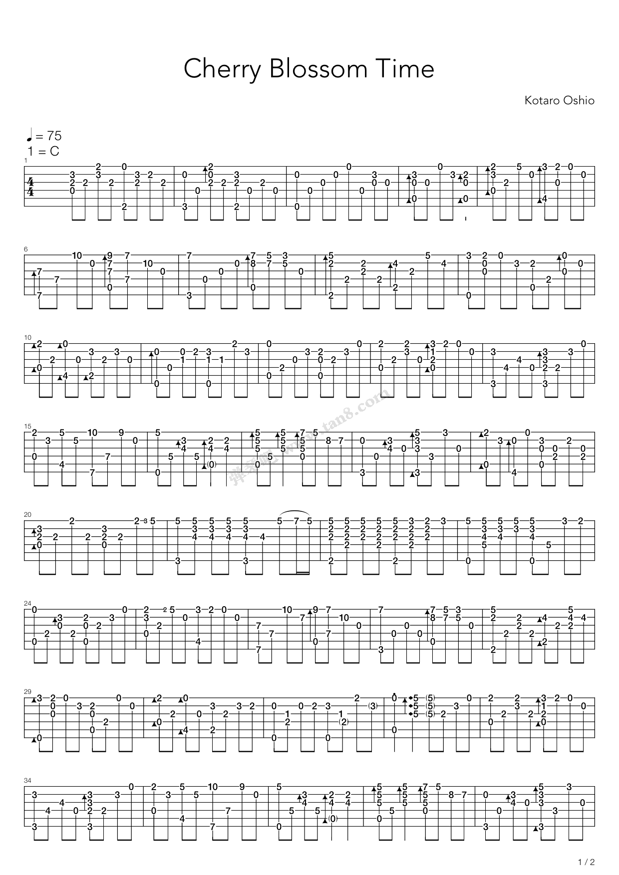 押尾桑《樱花盛开的时候》吉他谱_吉他独奏谱...